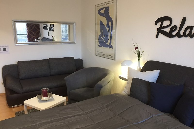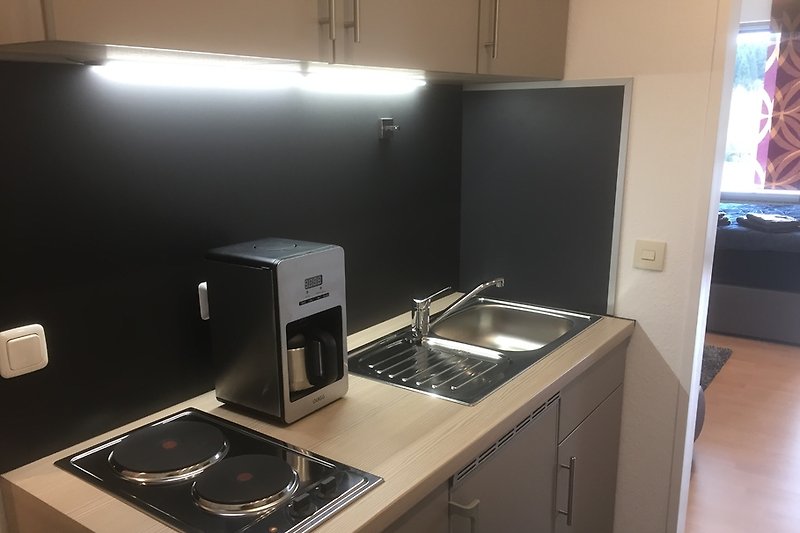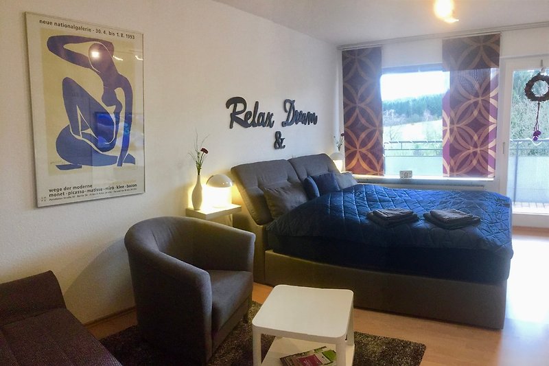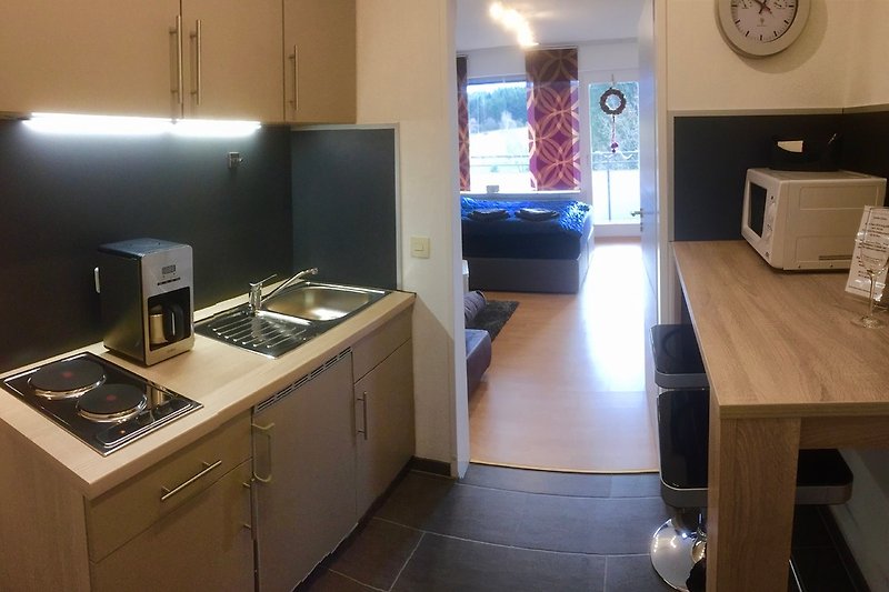 Domek wakacyjny Steinpilzhütte w Brilon, Sauerland: ok. 60 m², przytulny salon z otwartą kuchnią, 1 sypialnia, dla 2 osób.