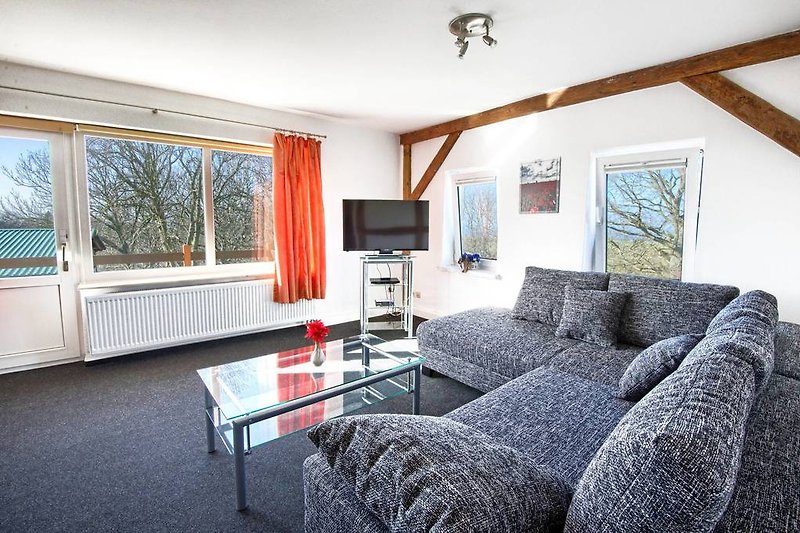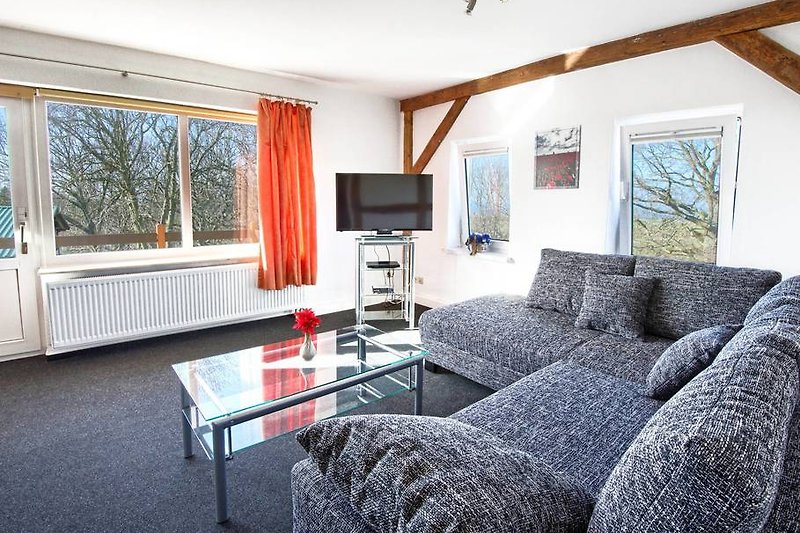 Gemütliche Wohnung nit tollem Panoramafenster.