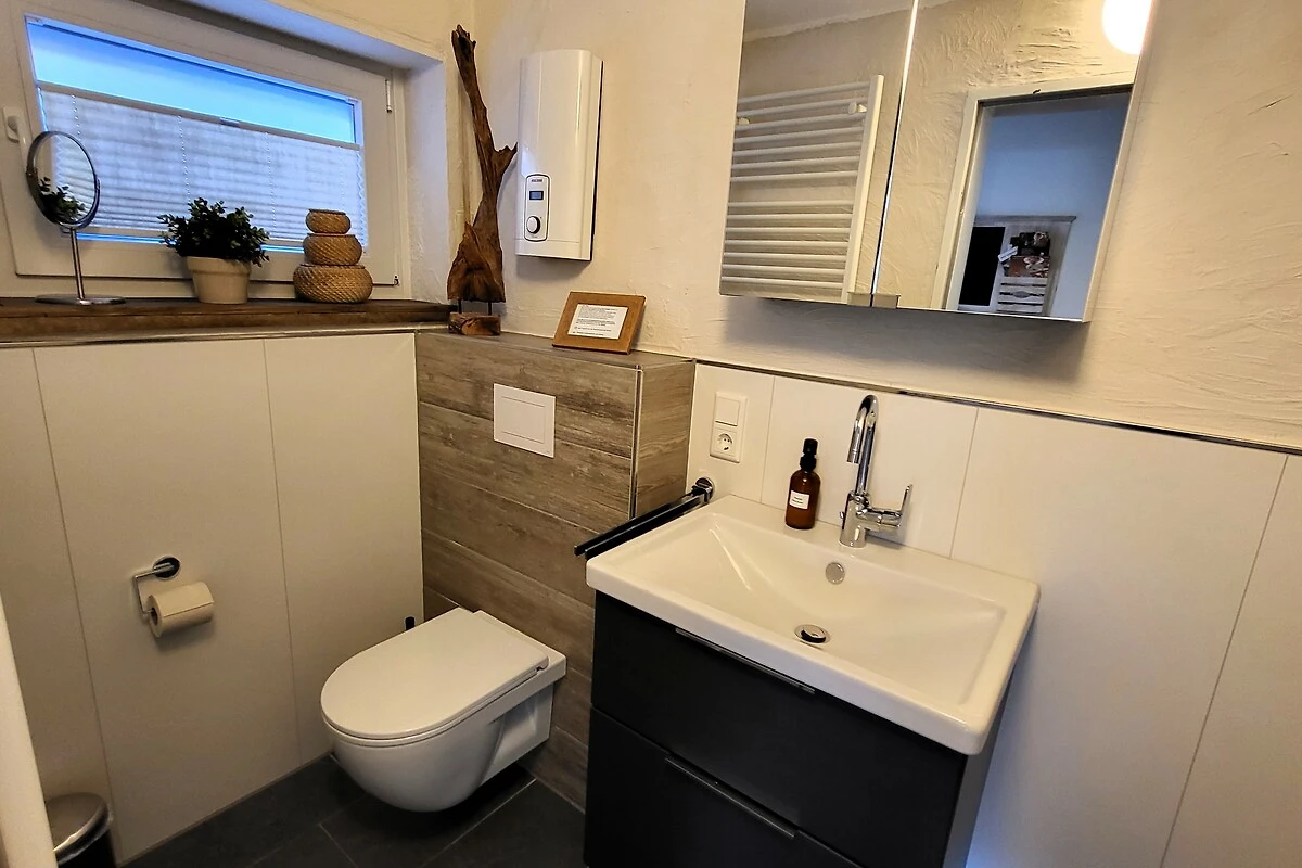 Kleine Auszeit – Twoje miejsce na relaksujące dni w Hochsauerlandzie. Już po wejściu do apartamentu poczują Państwo jasną, przyjazną atmosferę: pełne światła okna, ciepłe drewno i starannie dobrane akcenty kolorystyczne tworzą miejsce, w którym można się dobrze poczuć. Wieczorem piec na pellet zapewnia przytulne chwile, podczas gdy wspominają Państwo dzień spędzony na łonie natury – w ten sposób każda chwila staje się małym wakacyjnym szczęściem.