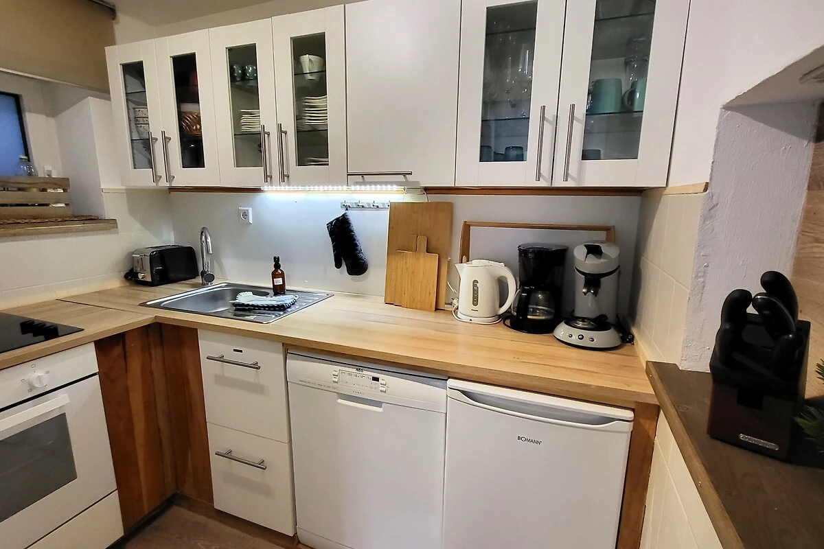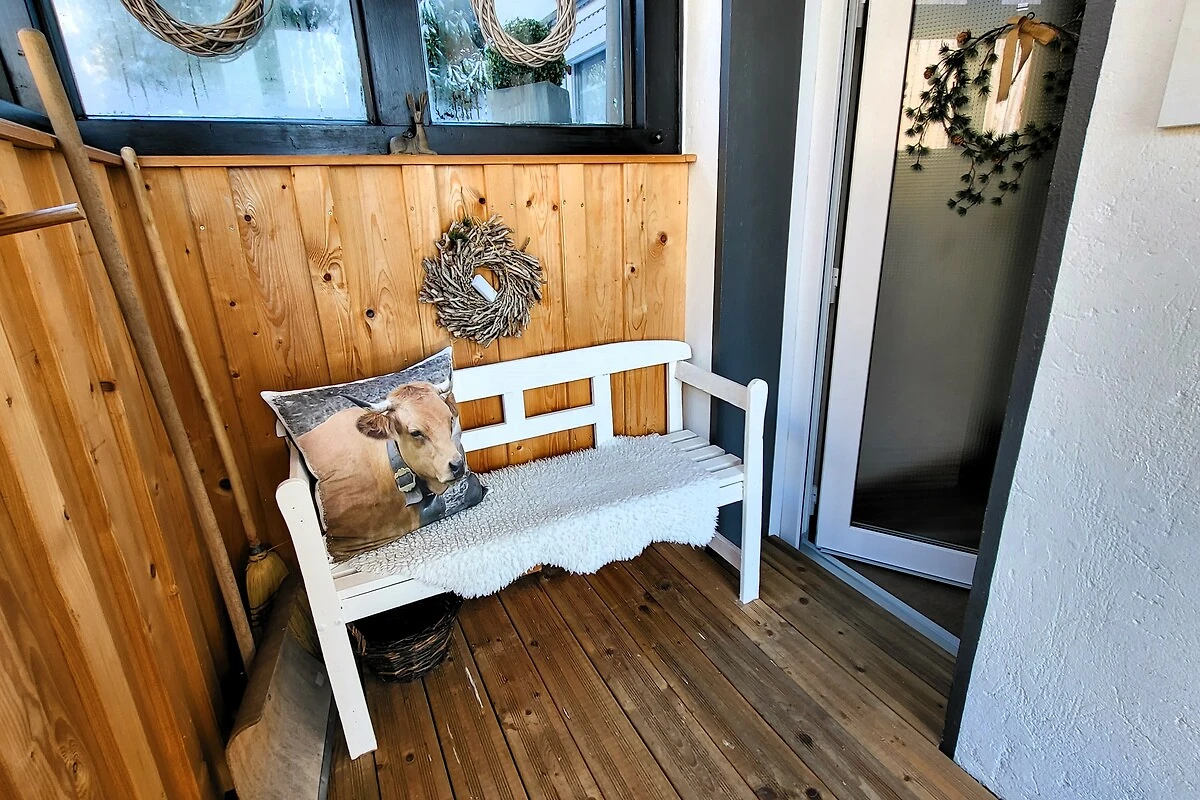 Przeszklona, rustykalna weranda przypomina niemal mały ogród zimowy i oferuje dużo miejsca na buty, kurtki, smycz dla psa, a zimą także na narty i buty narciarskie. Z małego przedpokoju wchodzą Państwo do świeżo wyremontowanej łazienki (2024) z prysznicem bez brodzika, dobrze wyposażonej kuchni oraz przestronnego salonu z częścią sypialnianą. Komfortowe łóżko kontynentalne o szerokości 1,60 m zapewnia spokojny sen, a sofa również może zostać rozłożona do łóżka o szerokości 1,60 m. Tu nie chodzi tylko o apartament wakacyjny – tu chodzi o chwile, które należą do Ciebie: długie spacery z psem, spokojne godziny przy piecu na pellet, ciepłe letnie wieczory w ogrodzie i to dobre uczucie, że jesteś na właściwym miejscu. W „Kleinen Auszeit” znajdziesz wszystko, co sprawia, że urlop staje się naprawdę niezapomniany.
