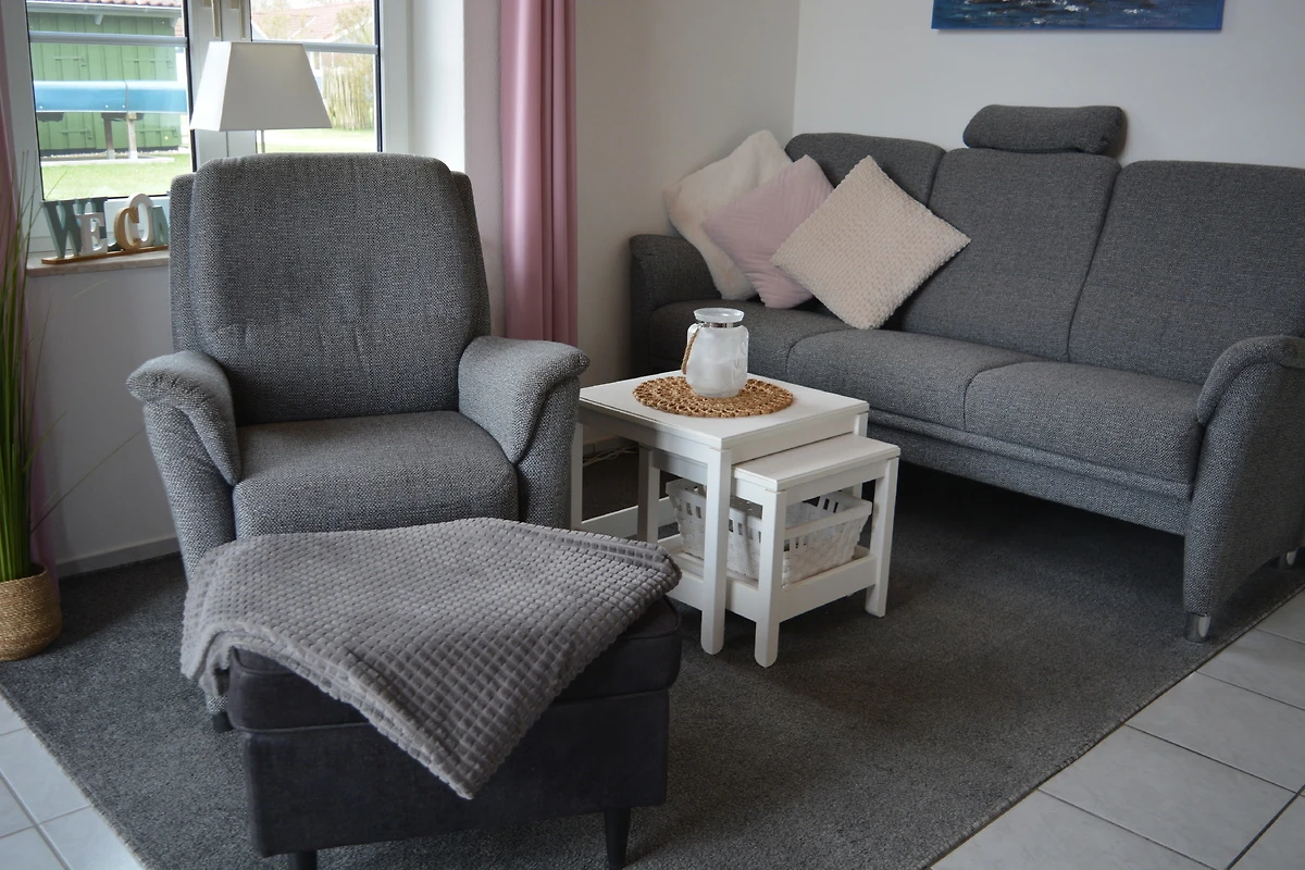 W jasnej i przyjaznej części mieszkalnej i jadalnej znajdą Państwo 40-calowy telewizor satelitarny z odtwarzaczem BlueRay(DVD), a także radio. Nowy krajobraz mieszkalny, składający się z 3-osobowej sofy i dwóch foteli, zaprasza do wypoczynku.