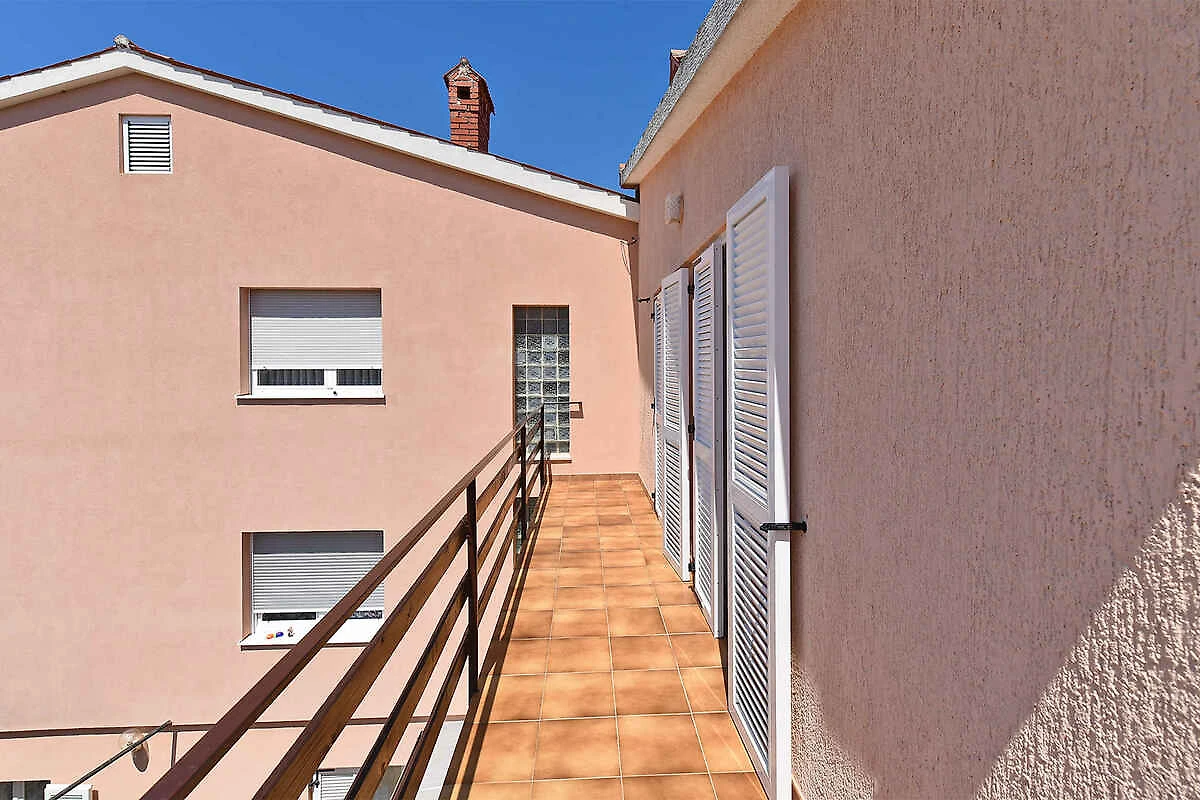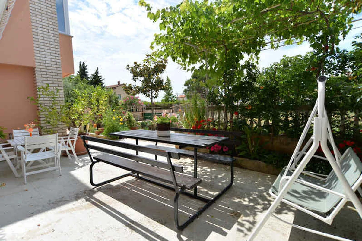 Medulin. Mieszkanie wakacyjne znajduje się na działce ogrodowej. Właściciel mieszka na stałe w domu, jednak korzysta z osobnego wejścia. Parking (dla 1 samochodu) na posesji.