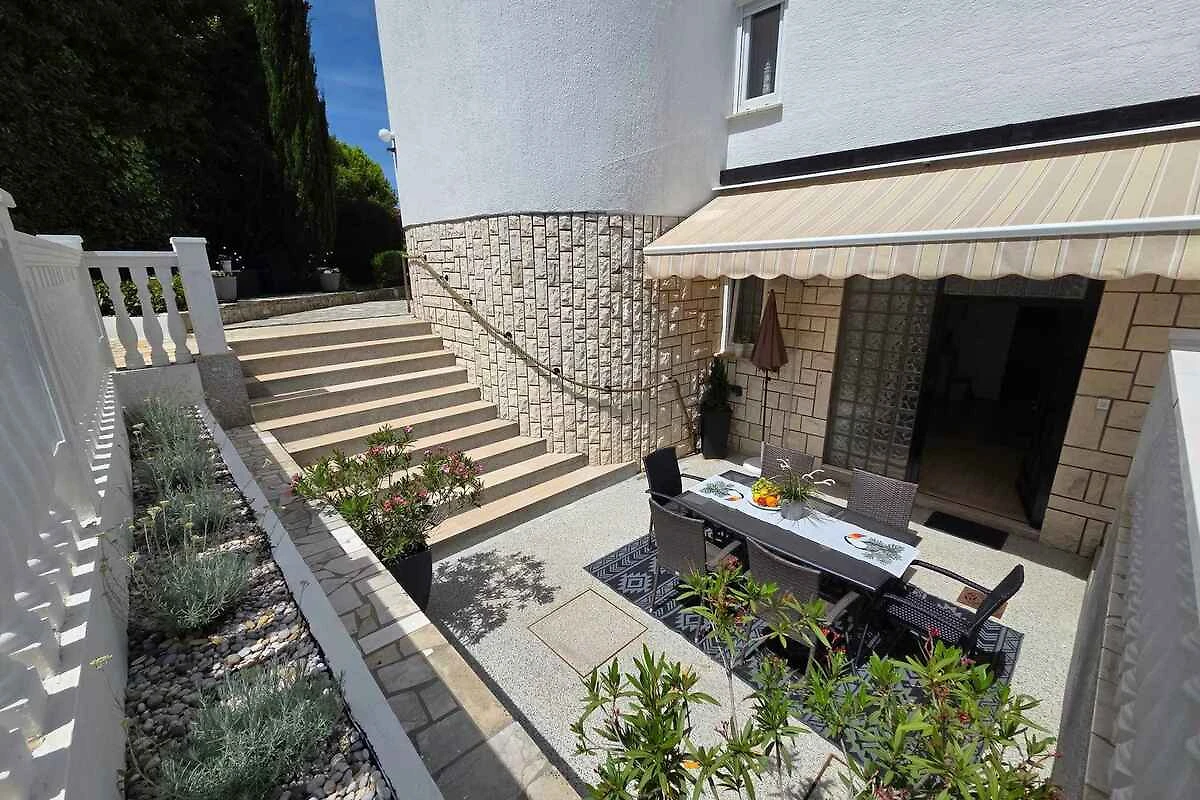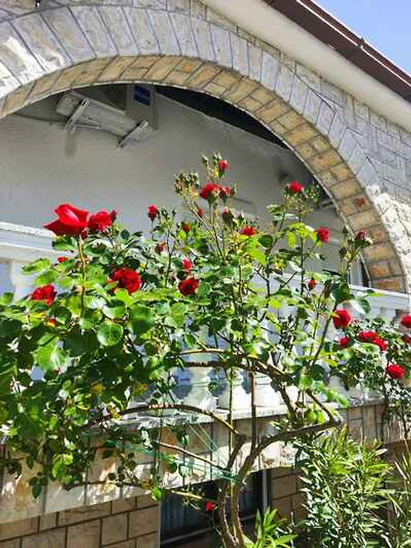 Malinska, 30 m n.p.m. Studio znajduje się na ogrodzonej działce ogrodowej z kwiatami i drzewami, ograniczonej ogrodzeniem. Właściciel mieszka na stałe w domu. Dojazd odbywa się drogą boczną (asfaltową). Parking na terenie posesji.