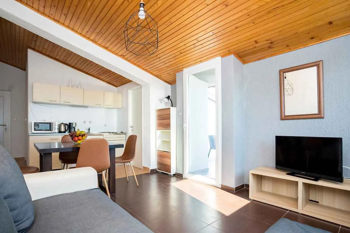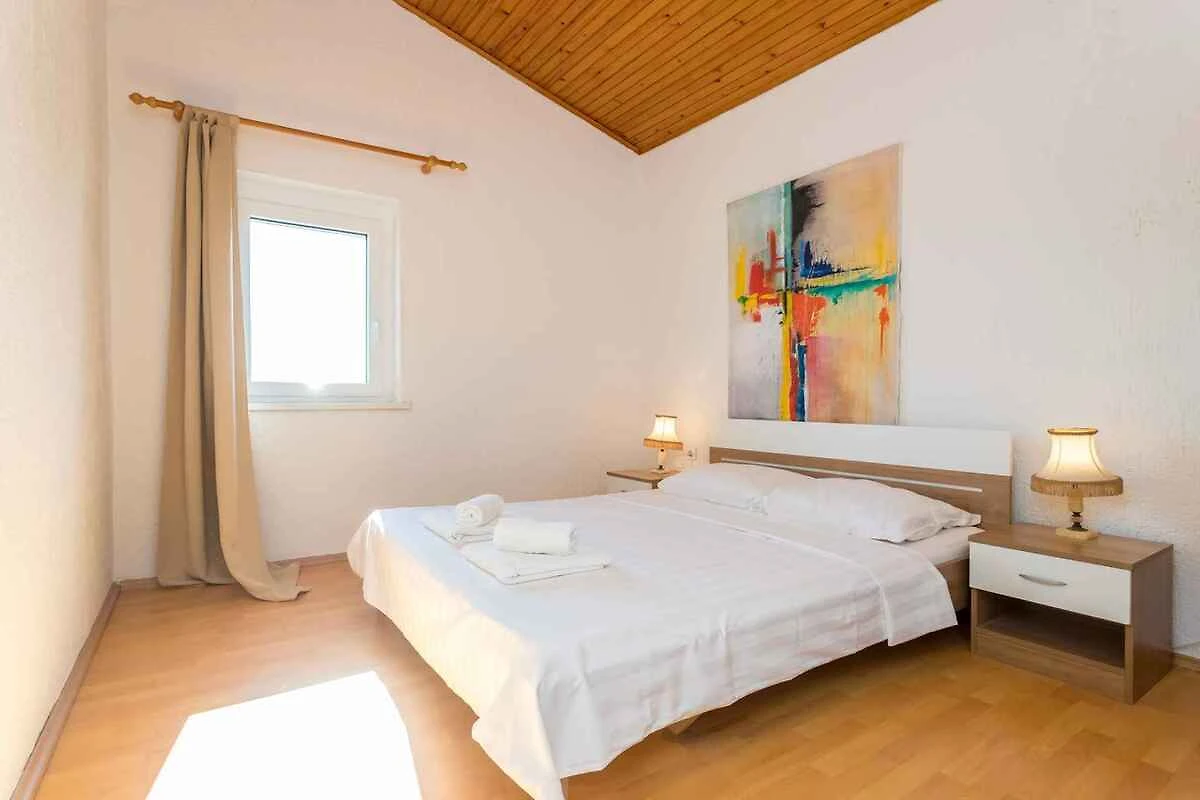 Mieszkanie wakacyjne znajduje się w wolnostojącym domu jednorodzinnym, zostało odnowione w 2014 roku i jest funkcjonalnie urządzone. Działka znajduje się na osiedlu mieszkaniowym, w centrum miejscowości. Również ze względu na widok z działki na morze i słoneczne położenie nad wodą, ta posiadłość jest popularna.