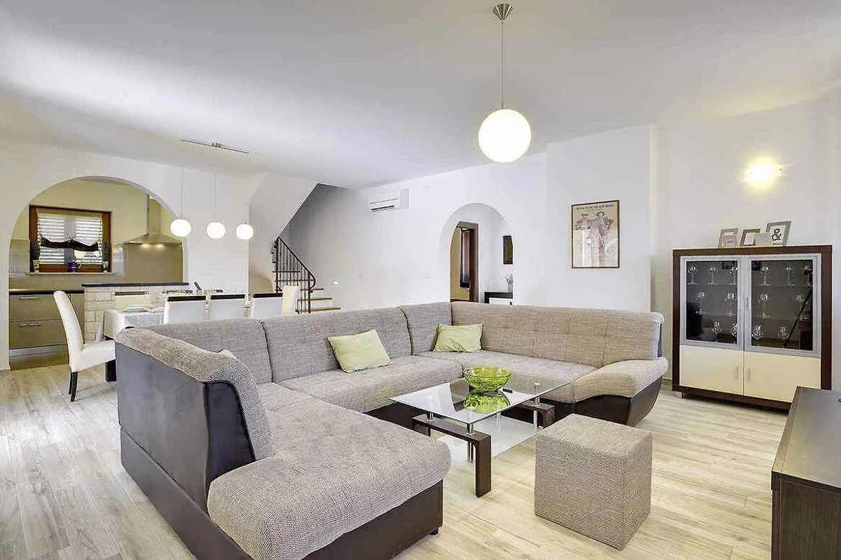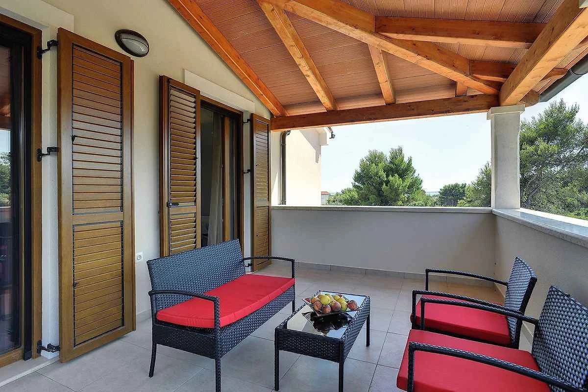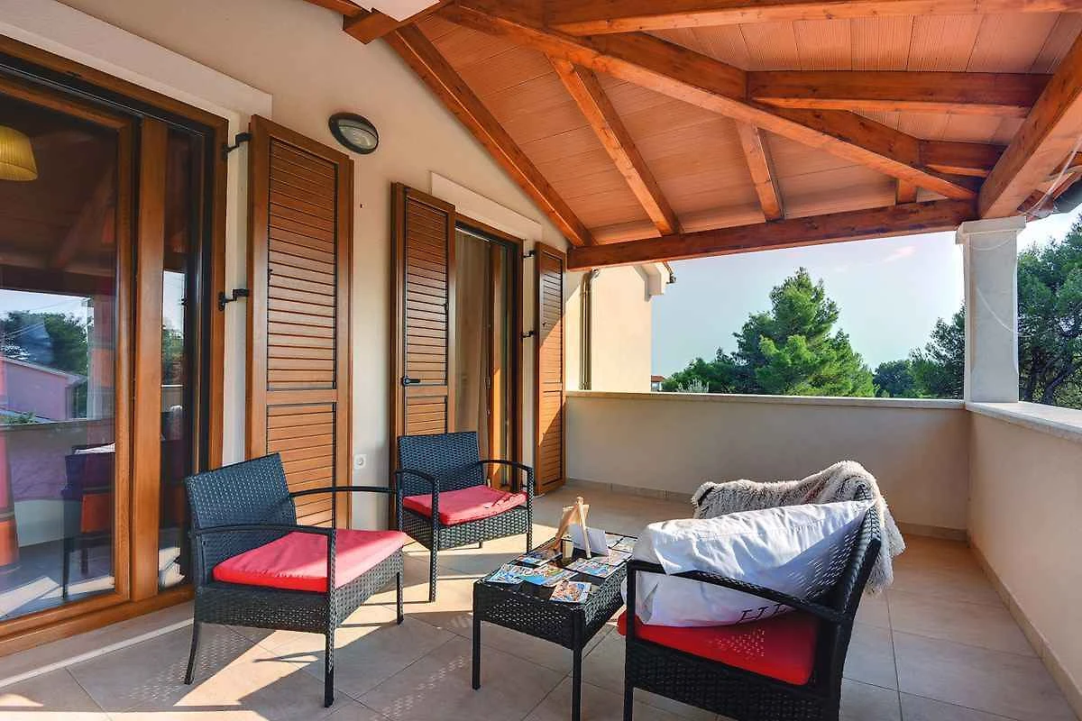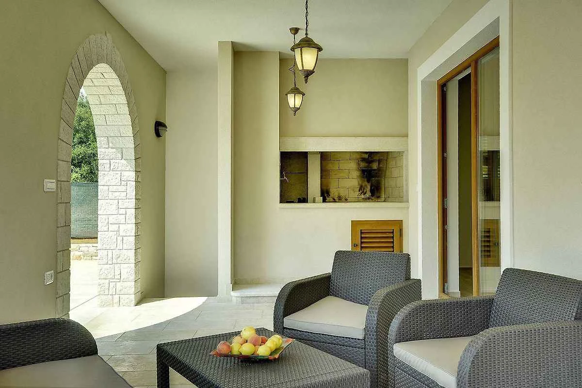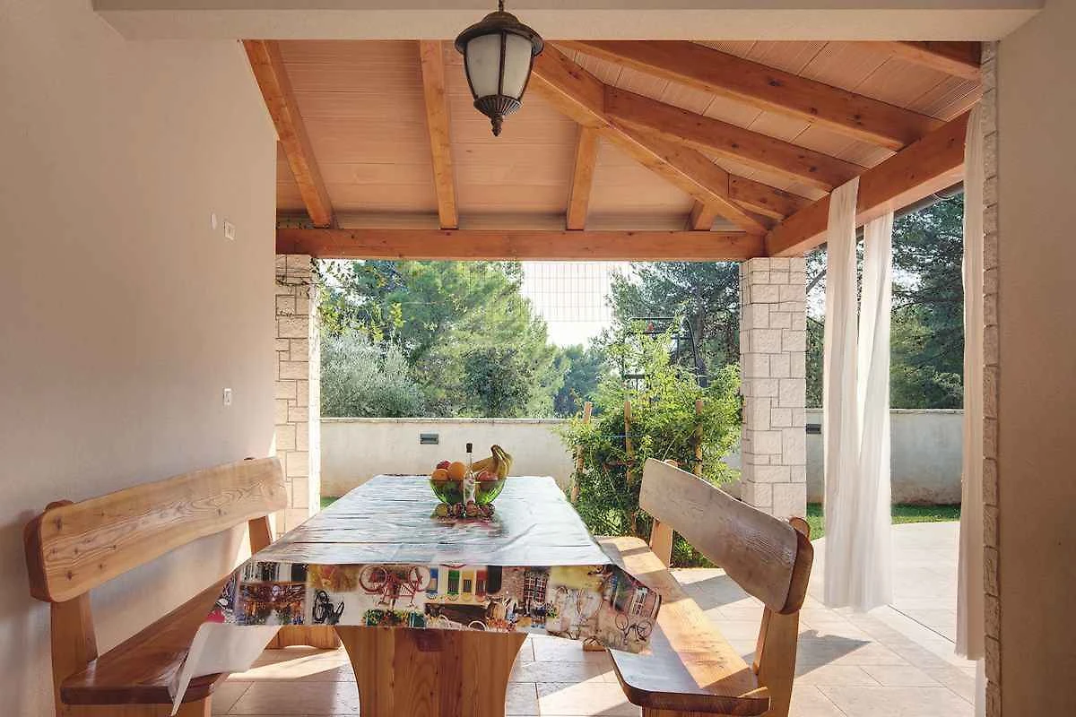Samodzielnie stojąca willa, zbudowana w 2015 roku, jest nowoczesna i urządzona w typowym lokalnym stylu. Działka znajduje się na osiedlu mieszkaniowym, na obrzeżach miejscowości. Ze względu na widok z działki na morze i słoneczne położenie, dom jest popularny. Do wyłącznej dyspozycji są: trawnik do leżakowania, parasol słoneczny, leżak, prysznic ogrodowy, możliwość grillowania, taras i meble ogrodowe.