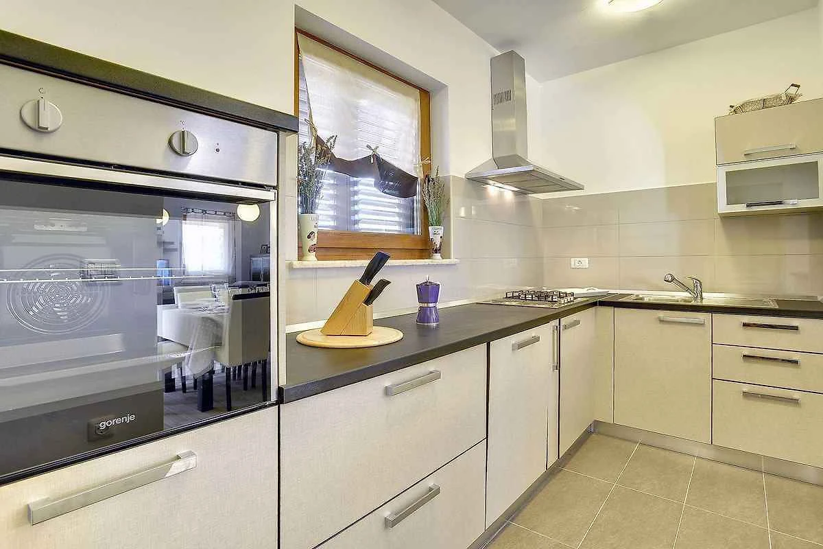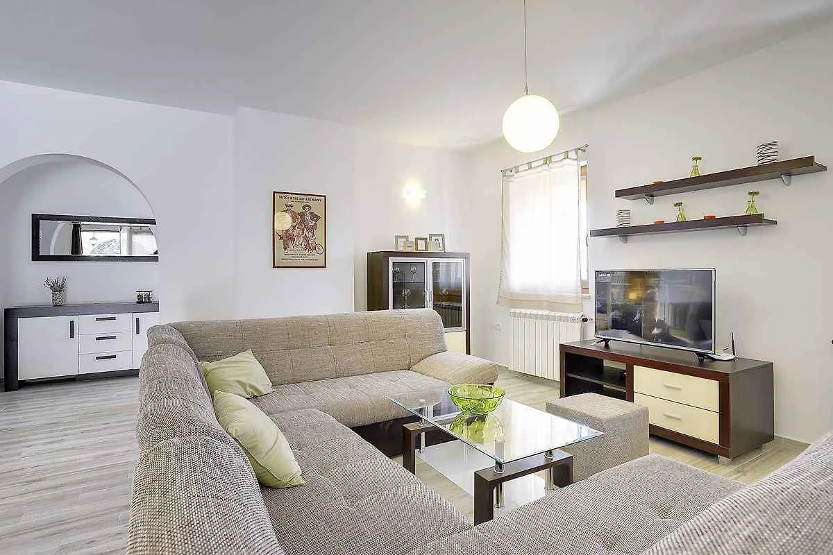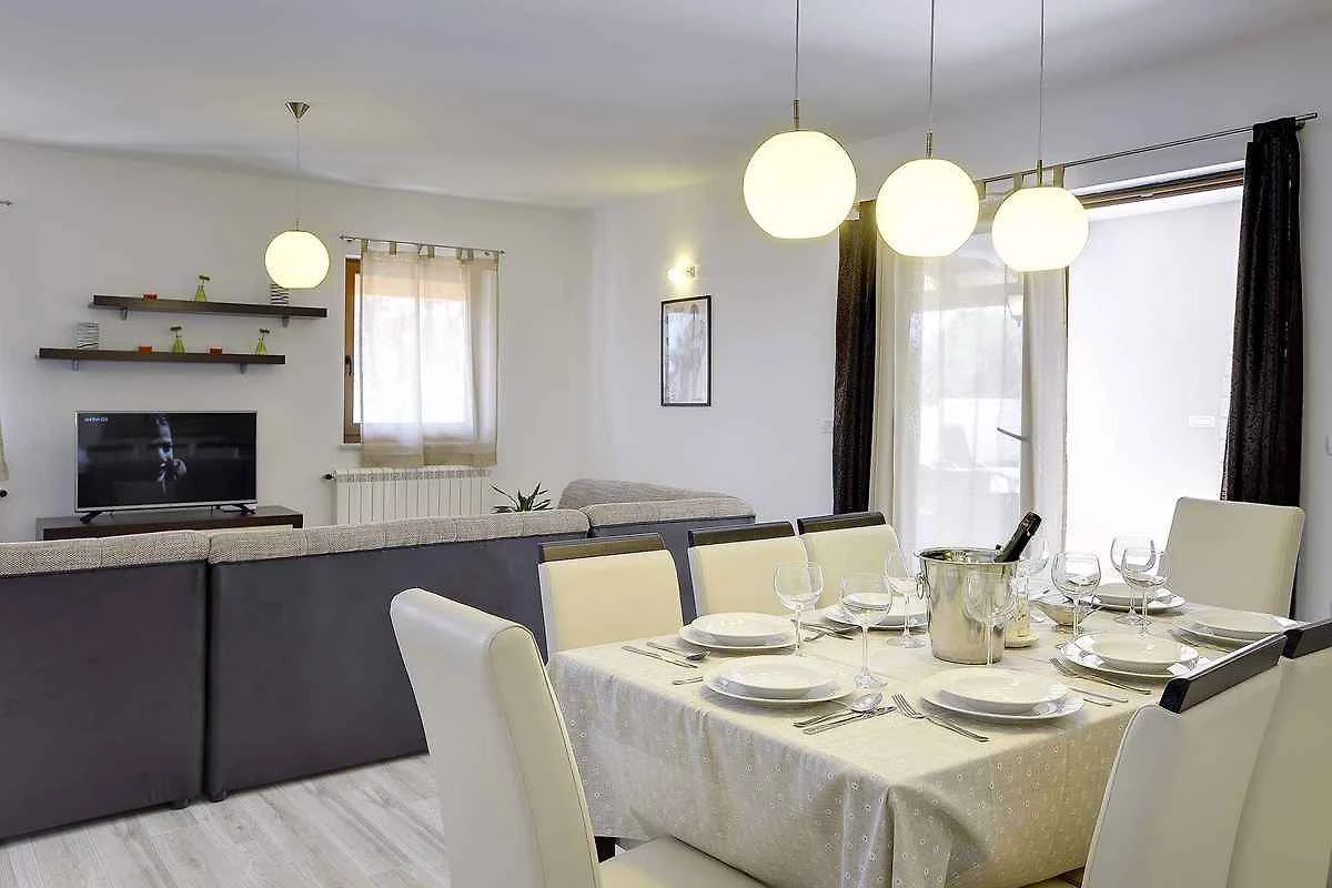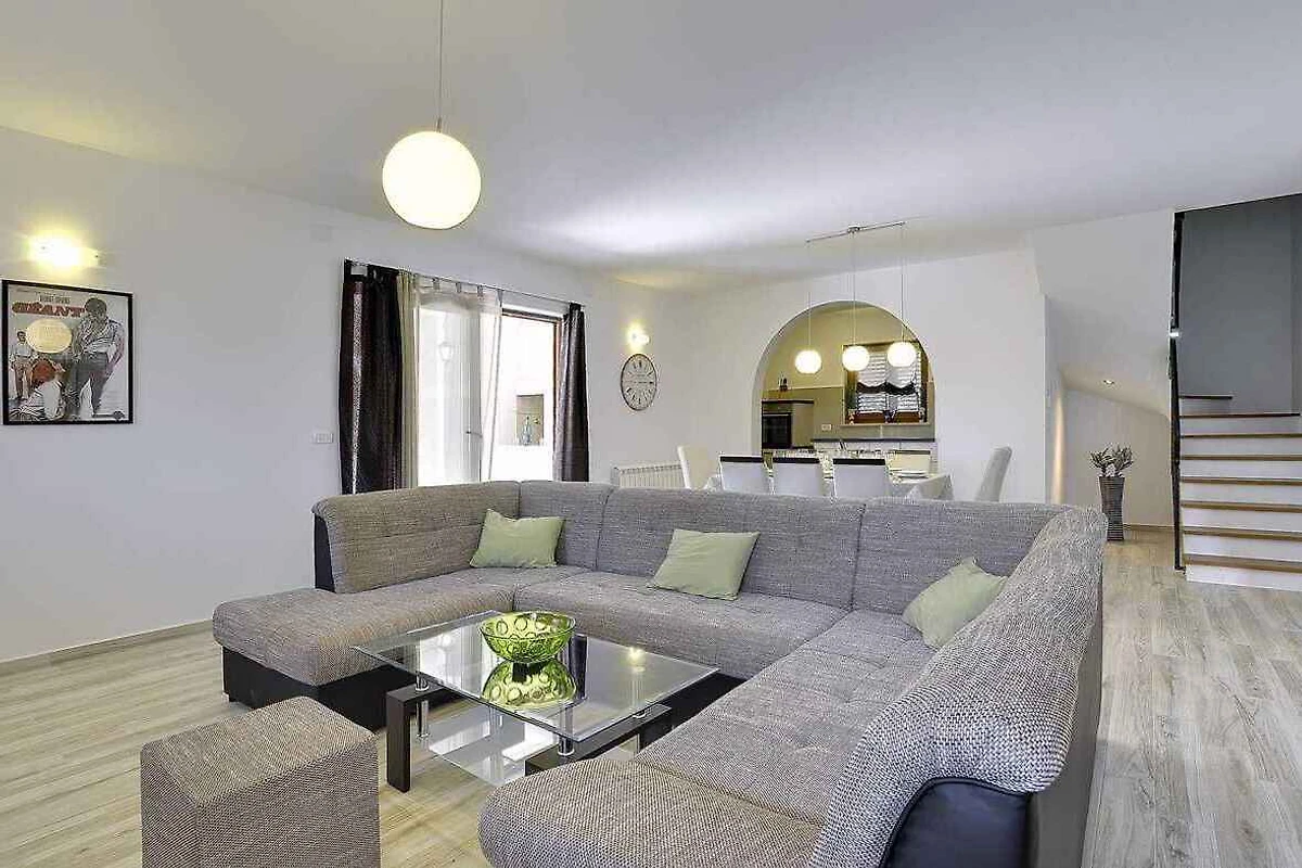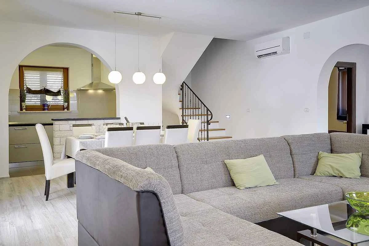 Samodzielnie stojąca willa, zbudowana w 2015 roku, jest nowoczesna i urządzona w typowym lokalnym stylu. Działka znajduje się na osiedlu mieszkaniowym, na obrzeżach miejscowości. Ze względu na widok z działki na morze i słoneczne położenie, dom jest popularny. Do wyłącznej dyspozycji są: trawnik do leżakowania, parasol słoneczny, leżak, prysznic ogrodowy, możliwość grillowania, taras i meble ogrodowe.