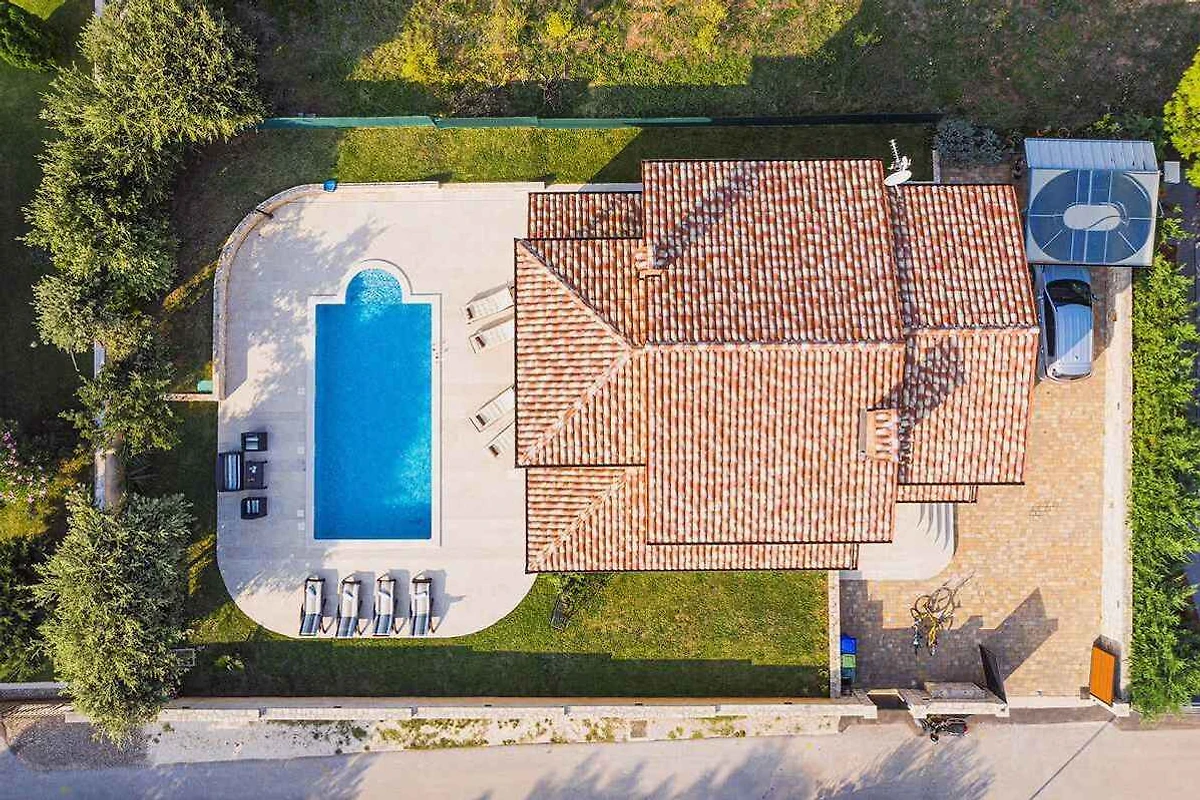 Medulin. Willa znajduje się na ogrodzonej działce ogrodowej o powierzchni 625 m² z trawnikiem, krzewami i drzewami, ograniczonej płotem. Właściciel nie mieszka w domu ani na posesji. Powierzchnia działki: 625 m² - Nieodpowiednie dla grup młodzieżowych poniżej 25 lat. Dojazd odbywa się drogą boczną (asfaltowaną). Parking (dla 3 samochodów) w wiatce i na posesji. 3 miejsca parkingowe na posesji, w tym 1 zadaszone miejsce parkingowe.