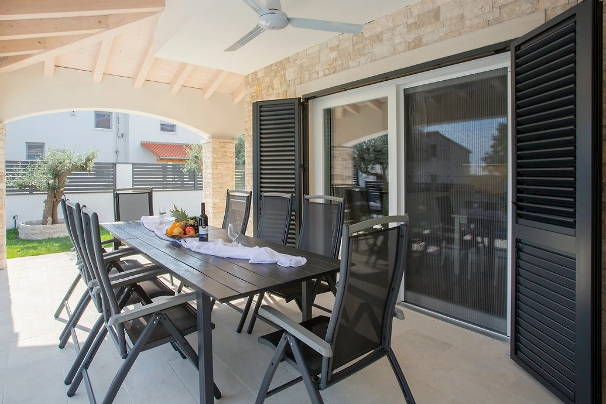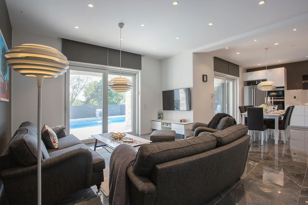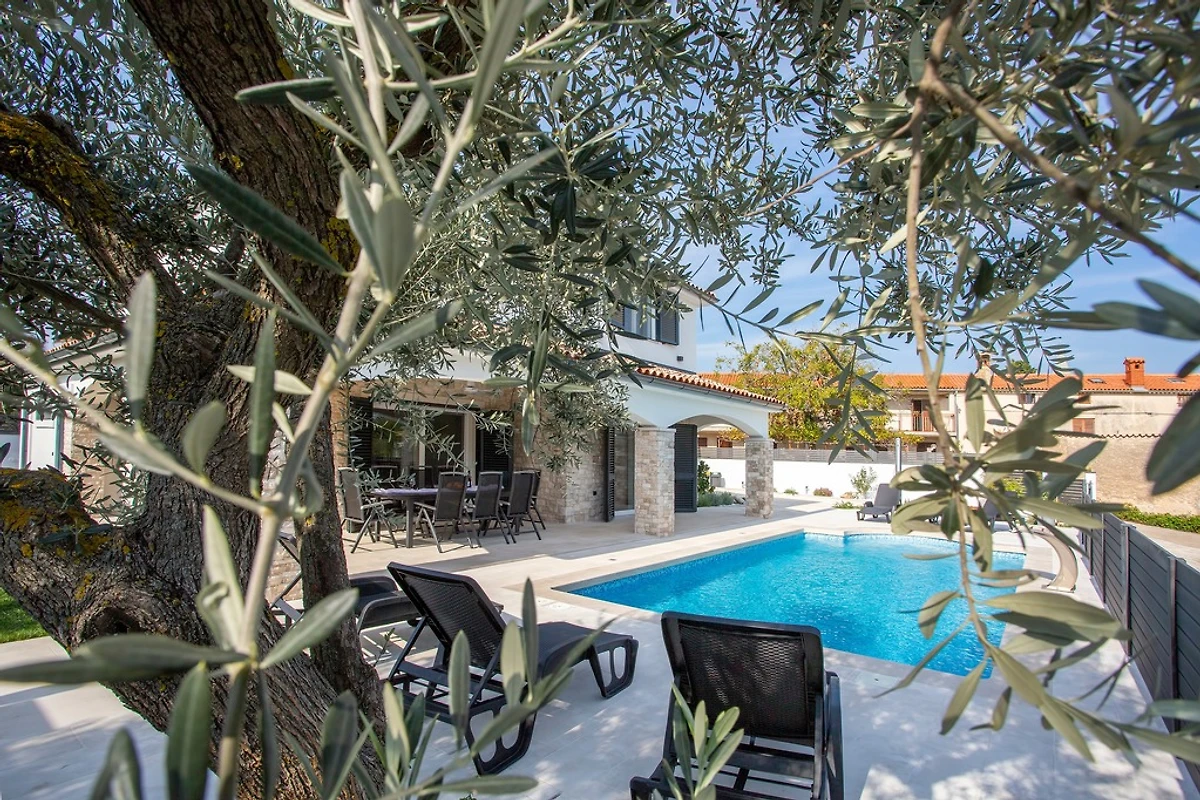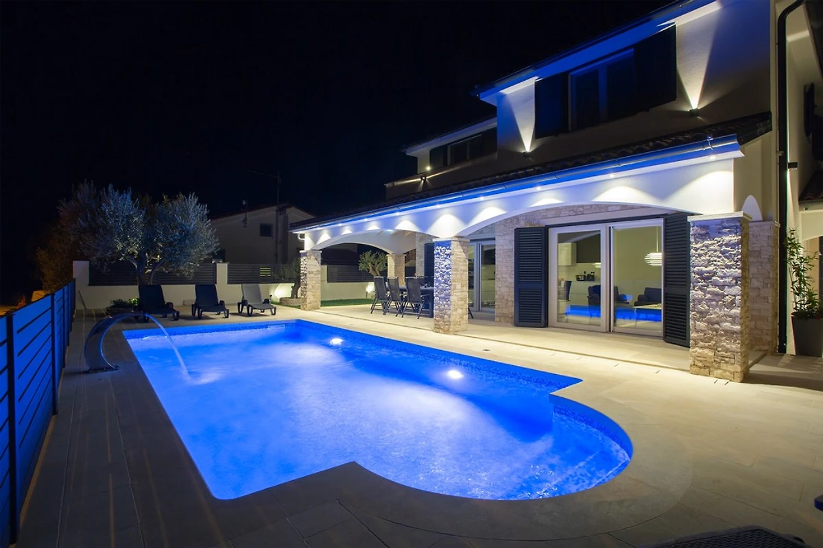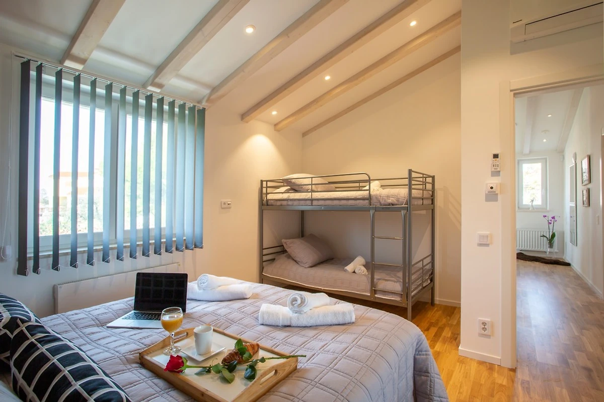 Ten nowy 5-gwiazdkowy dom położony jest w popularnej i turystycznej, ale spokojnej części Puli zwanej Stinjan, zaledwie 4 km od centrum Puli i amfiteatru! Kilka minut spacerem do plaży, restauracji i targowisk sprawia, że ten dom jest doskonale położony! Sam dom ma 4 sypialnie, każdy z własną łazienką i klimatyzacją, ogrzewany basen na wolnym powietrzu, 4 bajcele, 7 miejsc parkingowych, telewizor z ponad 4000 kanałami, picado, piłkarzyki, ładowarka do samochodów elektrycznych, grill i wiele więcej