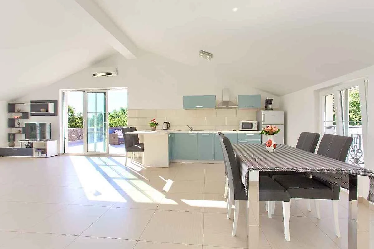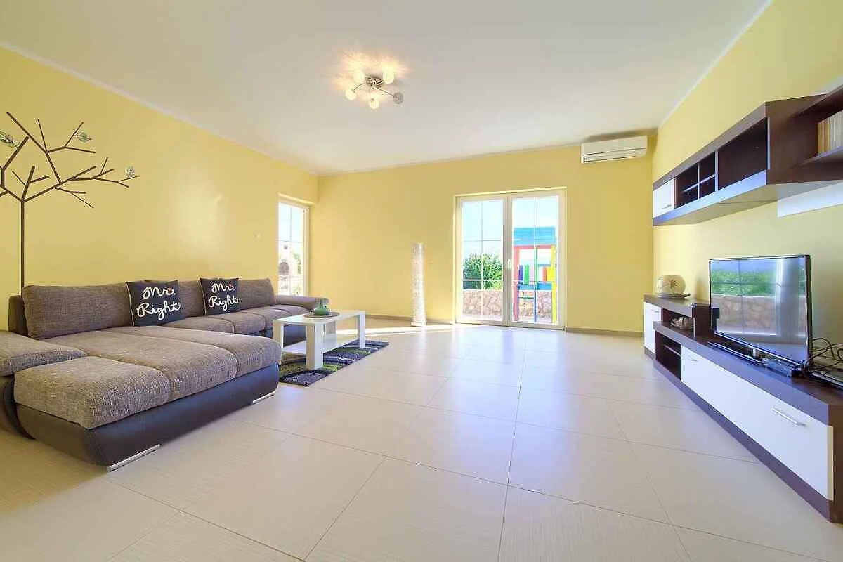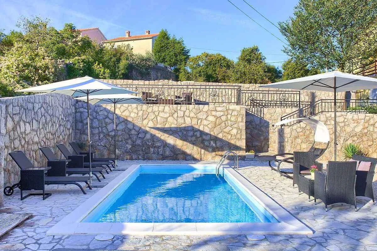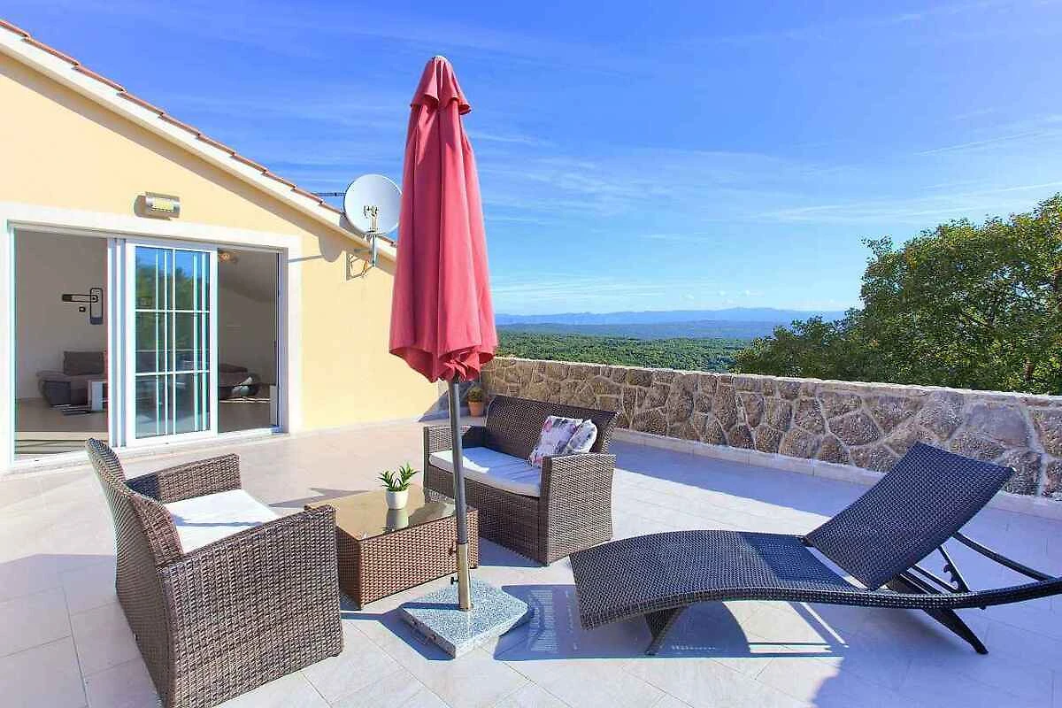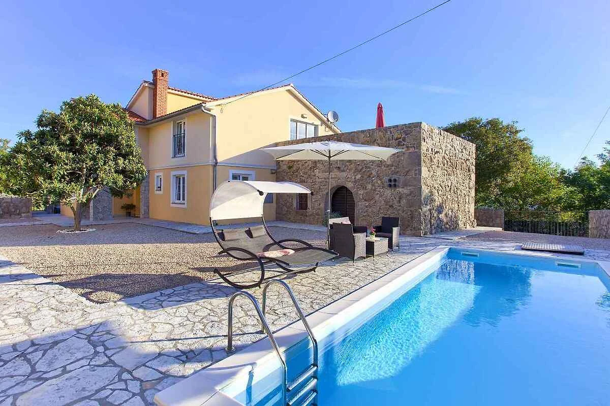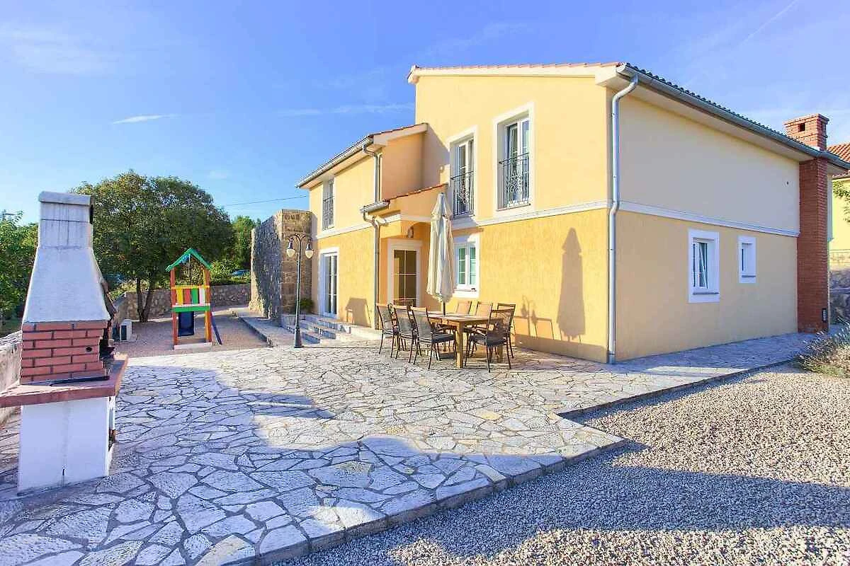 Krk. Willa znajduje się na ogrodzonej działce o powierzchni 800 m² z kwiatami i drzewami, otoczona płotem. Właściciel nie mieszka w domu ani na posesji. Dojazd odbywa się drogą boczną (asfaltowaną). Parking na terenie posesji.
