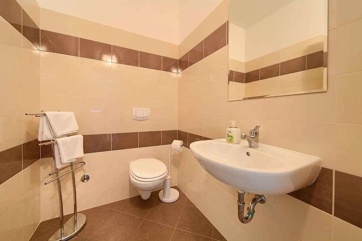 Wejście do Państwa willi znajduje się na parterze, jest na poziomie gruntu i prowadzi bezpośrednio do korytarza. Pokój dzienny (20 m², pokój przechodni) z 1 dodatkowym miejscem do spania na kanapie/sofie, TV, klimatyzacją, jadalnią (6 miejsc) i wyjściem na taras. Pokój dzienny (20 m², pokój przechodni) z 1 dodatkowym miejscem do spania na kanapie/sofie, TV, klimatyzacją i jadalnią (6 miejsc). 4 sypialnie każda (10 m²) z 1 łóżkiem podwójnym i klimatyzacją. Kuchnia (10 m², pokój przechodni) z klimatyzacją, kuchenką elektryczną (płyta ceramiczna, 4 pola), zmywarką, lodówką (zamrażalnik), kuchenką mikrofalową, ekspresem do kawy i czajnikiem elektrycznym. Łazienka (10 m²) z wanną, pralką, prysznicem, 1 umywalką, WC i oknem. Łazienka (10 m²) z prysznicem, 1 umywalką, WC i oknem.