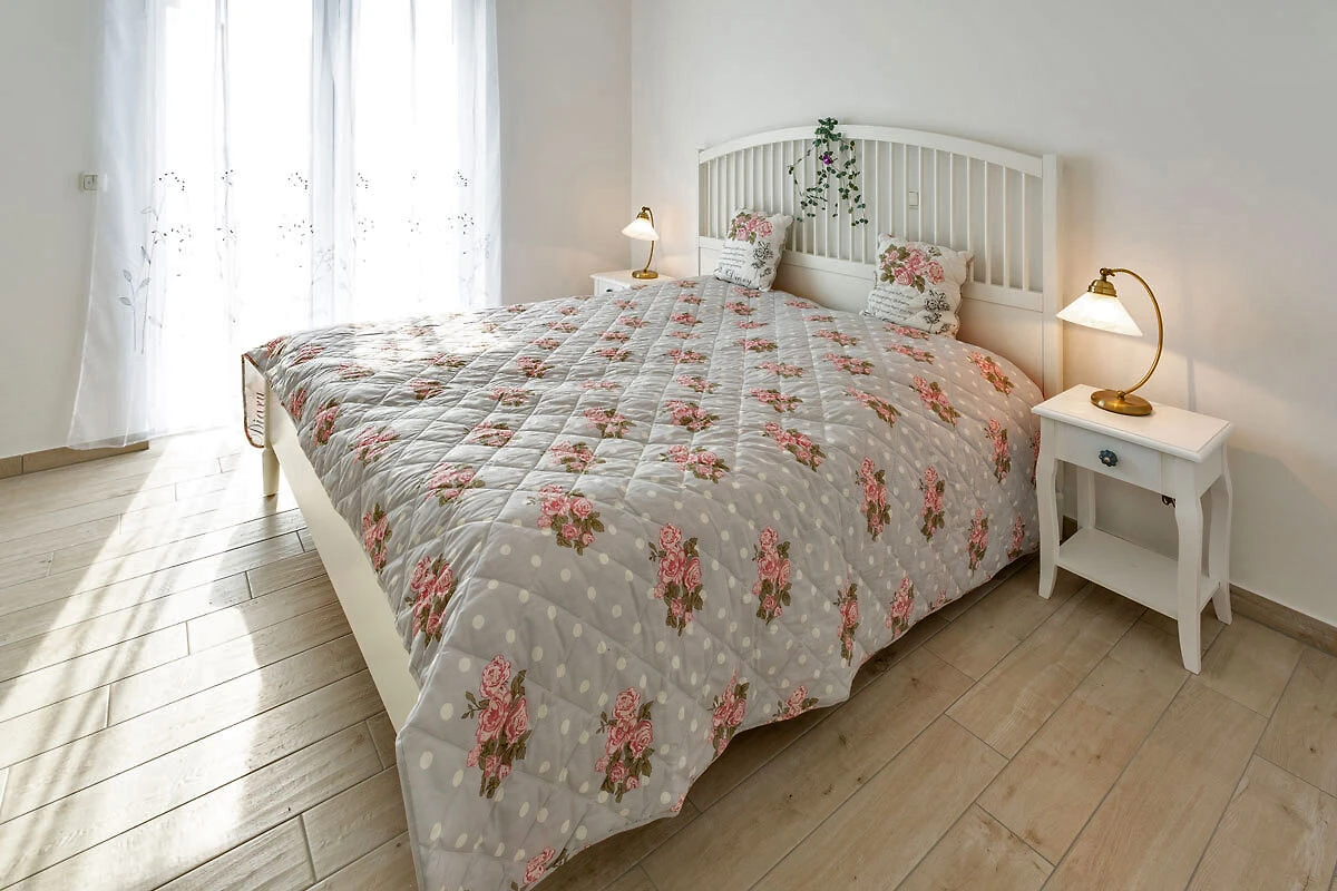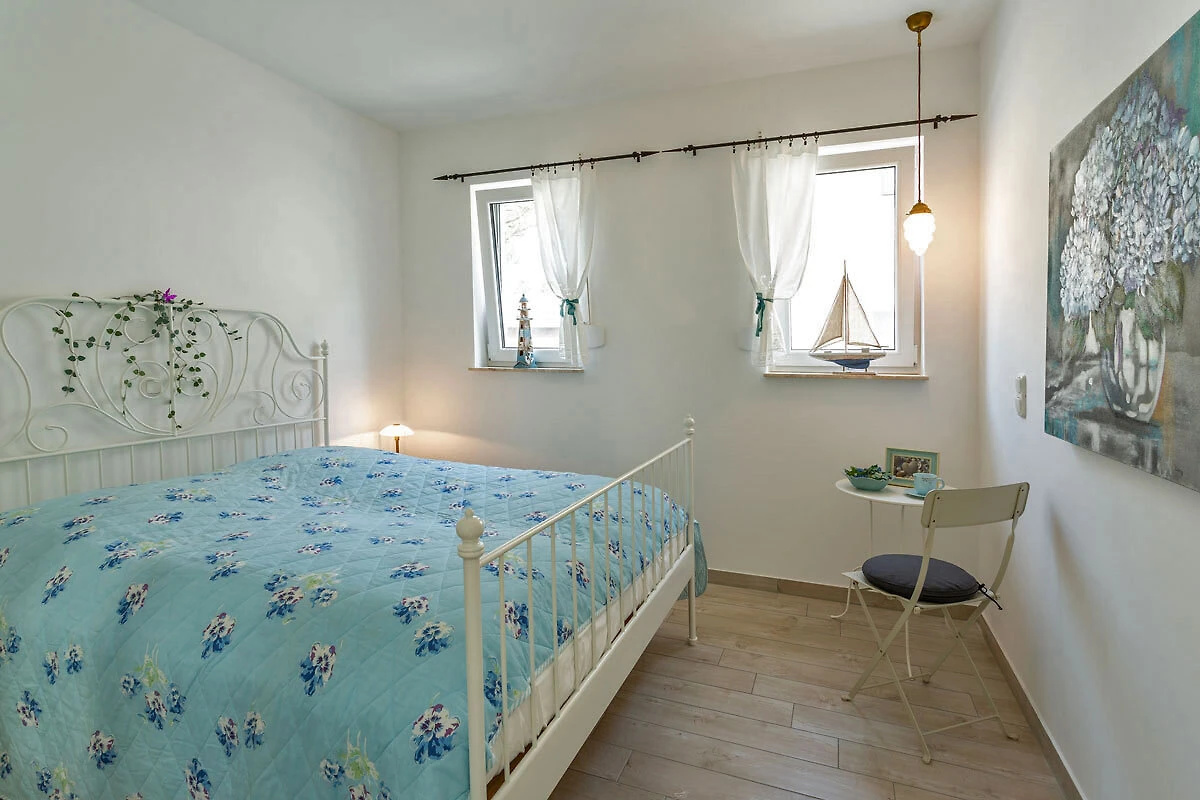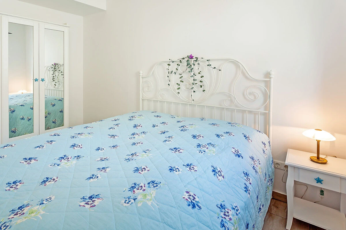 Jedna sypialnia wyposażona jest w wygodne łóżko małżeńskie (2 oddzielne materace o wymiarach 90 x 200 każdy) oraz przestronną szafę z lustrzanymi drzwiami, a także duże biurko. Duże drzwi tarasowe skierowane są na południe.
