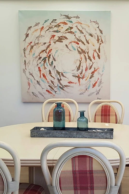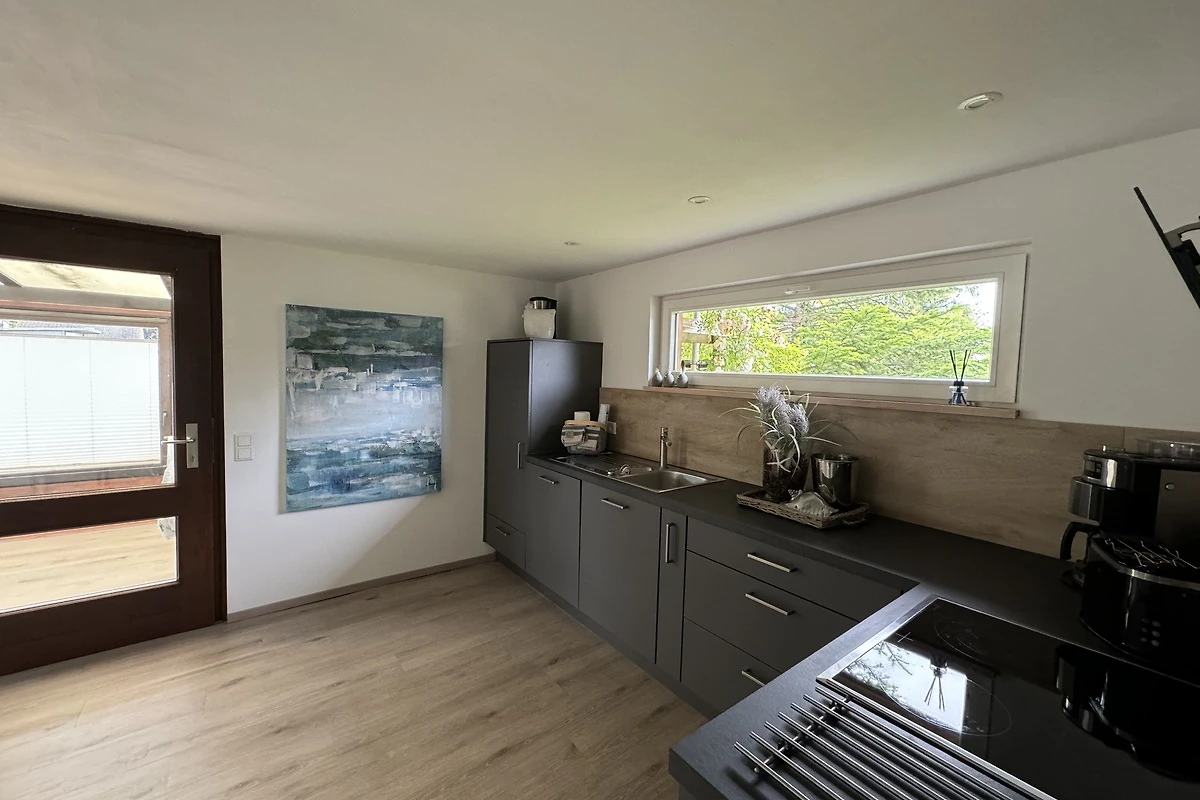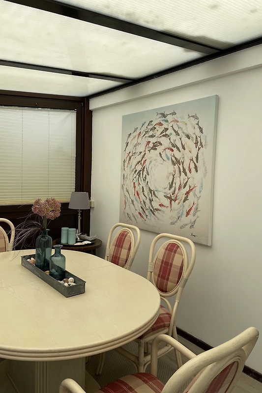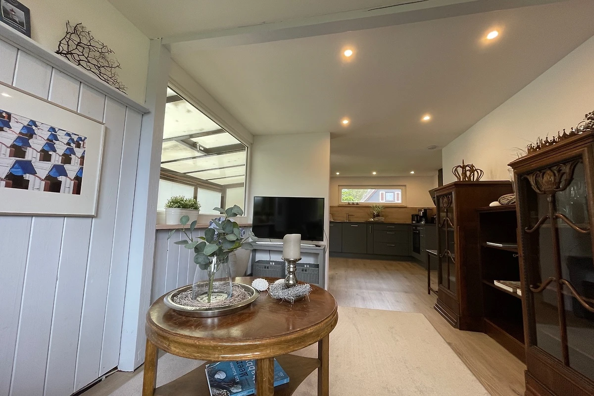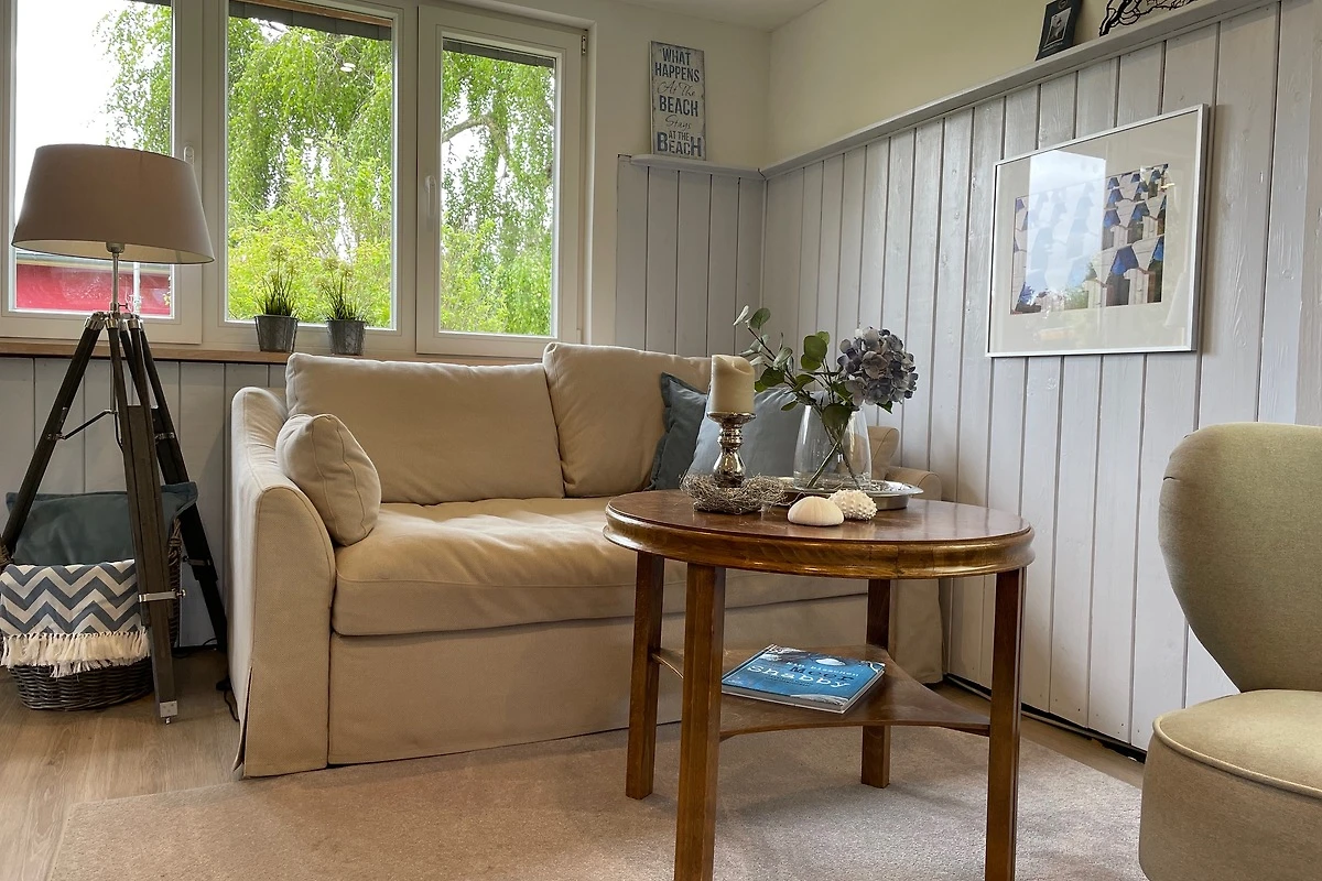 Miękkie kolory, naturalne materiały i lekkie tkaniny charakteryzują pomieszczenia i nadają domowi orzeźwiającą lekkość. Możesz oczekiwać 2 jasnych pokoi, dużej, nowocześnie umeblowanej otwartej kuchni, a także wygodnej łazienki z prysznicem. W przestronnym ogrodzie zimowym możesz pozwolić, aby natura miała na Ciebie wpływ.