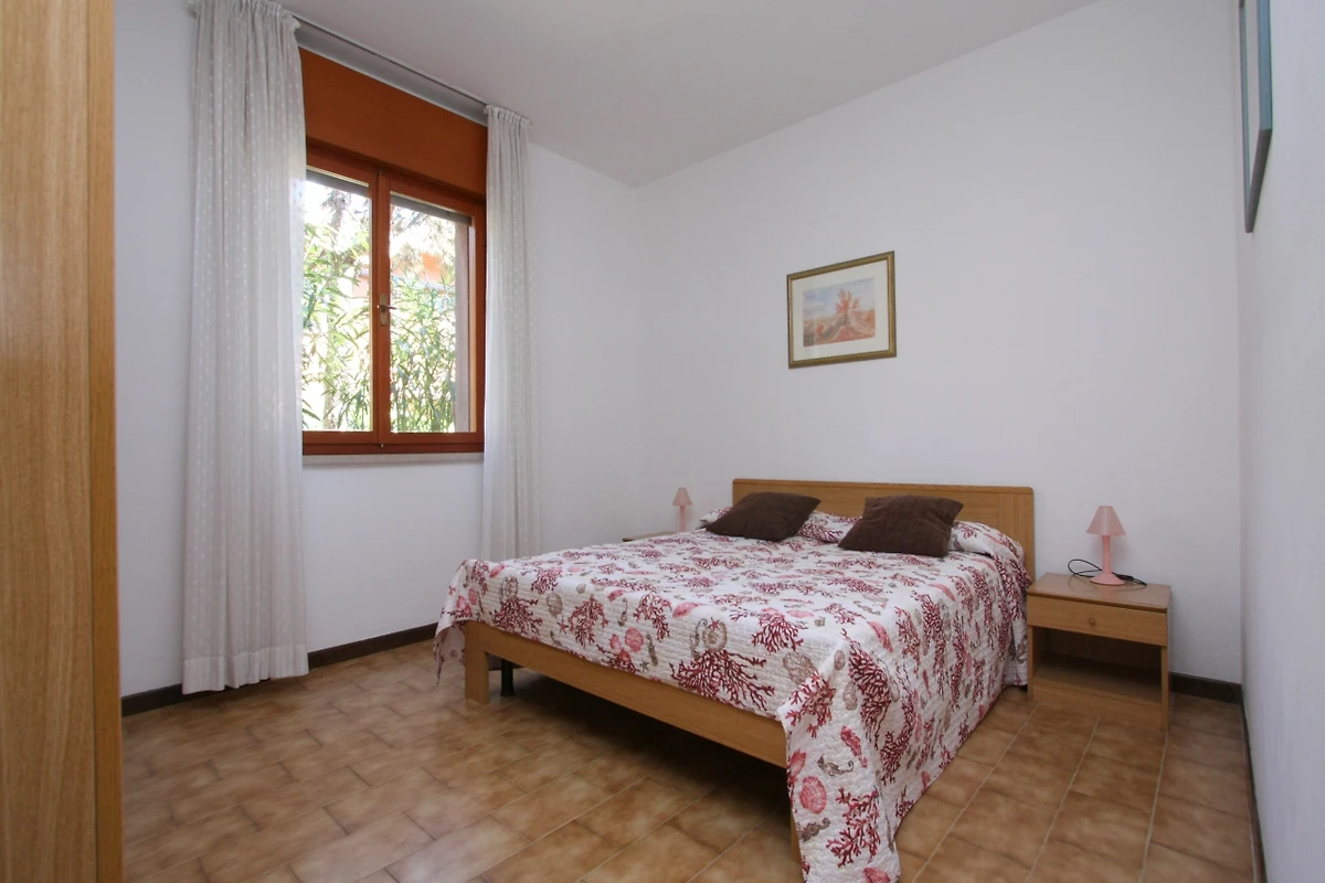 Pokój dzienny/sypialnia z 1 dodatkowym łóżkiem na kanapie/sofie, TV, klimatyzacją i wyjściem na balkon. Sypialnia z 1 łóżkiem piętrowym. Sypialnia z 1 łóżkiem małżeńskim. Aneks kuchenny w pokoju dziennym/sypialni z kuchenką gazową, lodówką, kuchenką mikrofalową i ekspresem do kawy. Łazienka z prysznicem i WC.