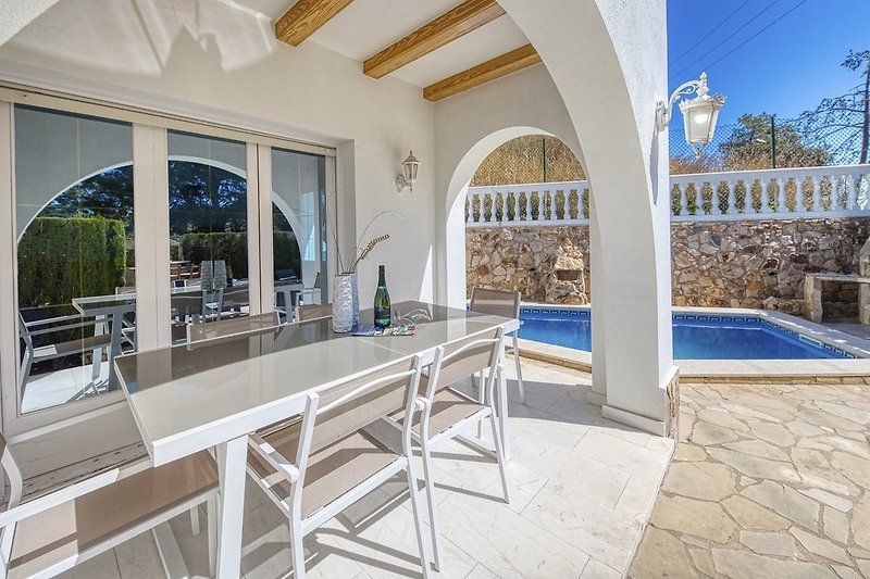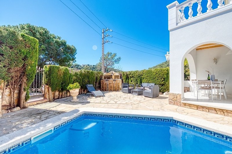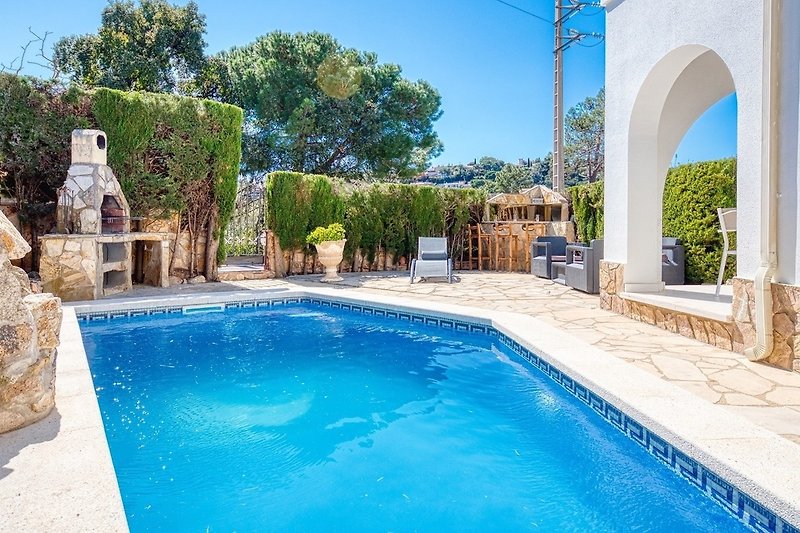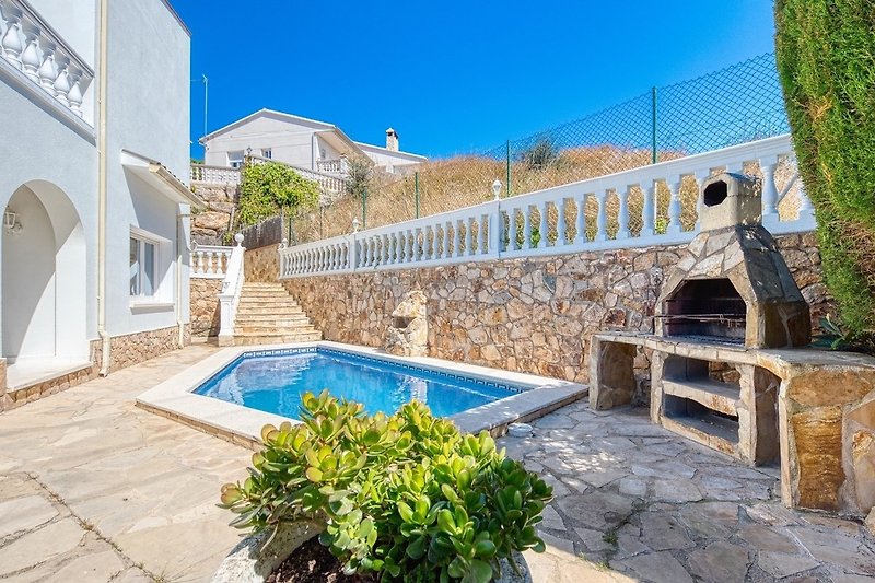 Villa Maxima to dom wakacyjny dla 8 osób z prywatnym basenem, 4 sypialniami i 2 łazienkami. Willa może być używana jako wakacyjna willa dla 9 osób (1 dodatkowe łóżko za dodatkową opłatą), znajdziesz Villa Maxima w Lloret de Mar, w Font de Sant Llorenc, Costa Brava, Hiszpania. Willa wakacyjna znajduje się około 900 m od plaży. Zwierzęta domowe: małe zwierzęta, zaleca się samochód.Basen ma wymiary 5m x 3m i głębokość 0,7m - 1,9m. Nieruchomość ma powierzchnię ok. 800 m2. Całkowita powierzchnia mieszkalna wynosi ok. 120 m2.