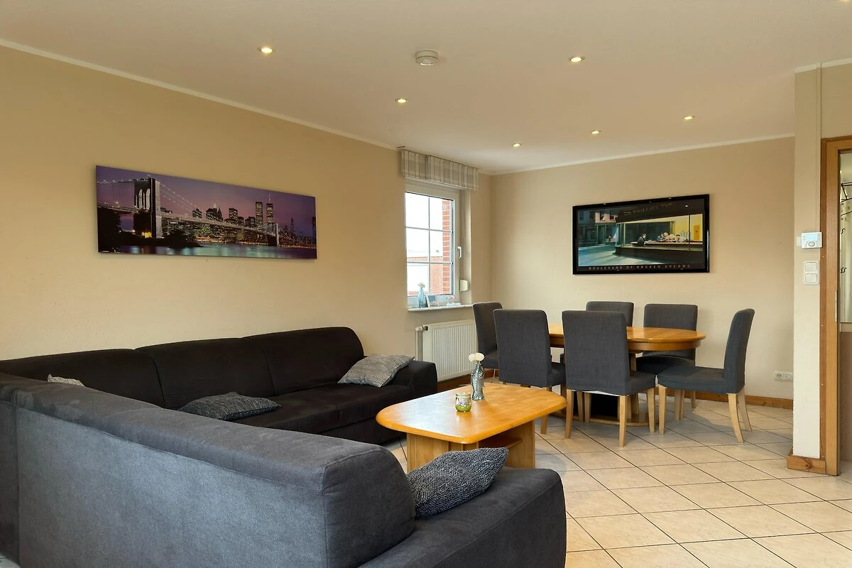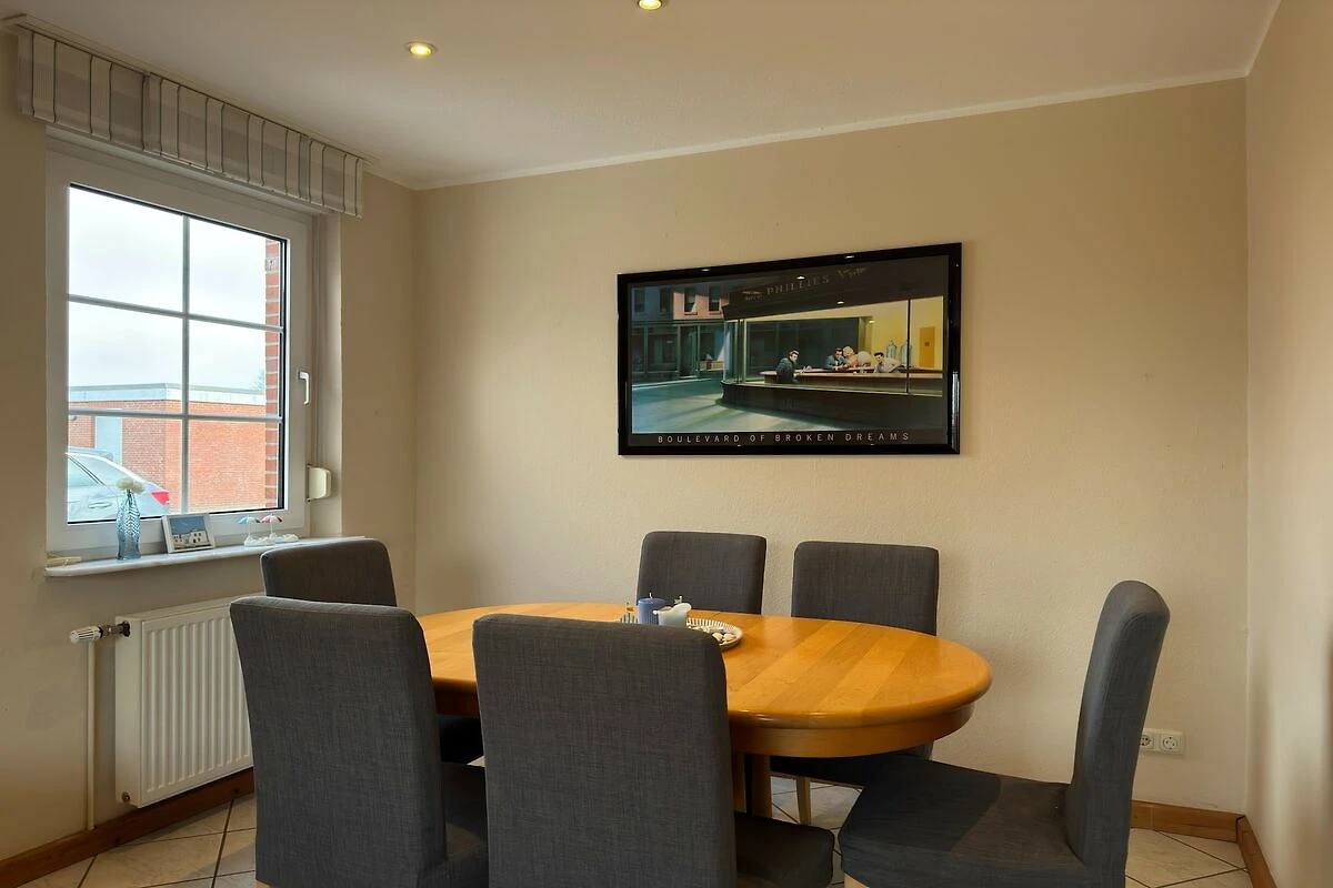 Atrakcje w pobliżu: Ciesz się długimi spacerami wzdłuż grobli i płaskim krajobrazem do jazdy na rowerze. Przeżyj dzień na plaży i pozwól, by przyjemna bryza znad Morza Północnego powiewała Ci wokół nosa. Światowe Dziedzictwo Morza Wattowego zaprasza młodych i starszych do ponownego odkrywania tego wyjątkowego krajobrazu raz po raz. Na dni złych warunków pogodowych „Sturmfrei” w Neßmersiel oferuje niezliczone zajęcia, gry i zabawy. Lub zagraj w golfa na pobliskim polu w Lütetsburgu. Tam możesz odwiedzić zamek