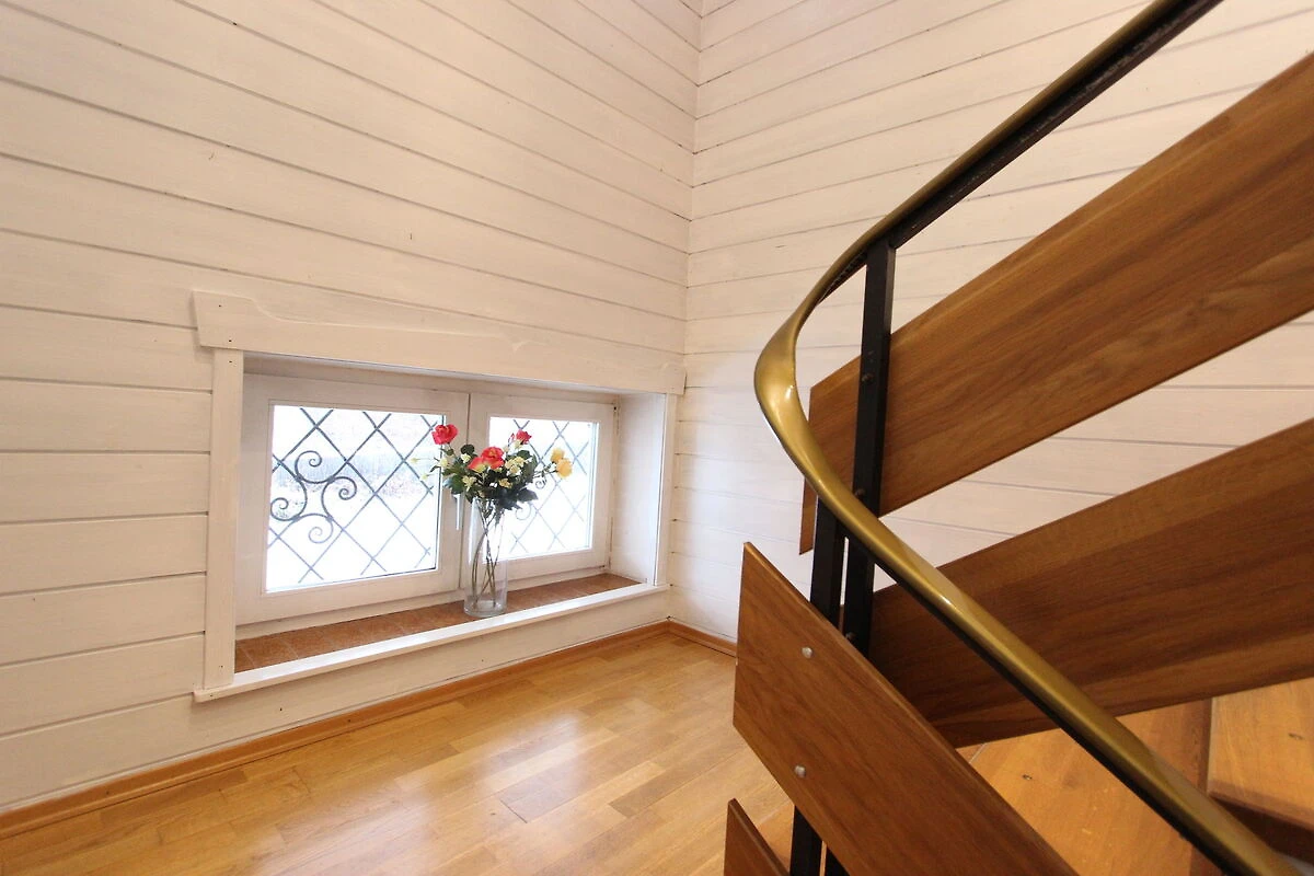 Na 1 piętrze: (salon(2-osobowa kanapa rozkładana, TV, stół jadalniany), kuchnia(kuchenka(plyta grzewcza), piekarnik, kuchenka mikrofalowa, zmywarka do naczyń, lodówka), sypialnia(łóżko 1-osobowe, łóżko 2-osobowe), sypialnia(2-osobowa kanapa rozkładana), łazienka(duża wanna, umywalka), toaleta)
