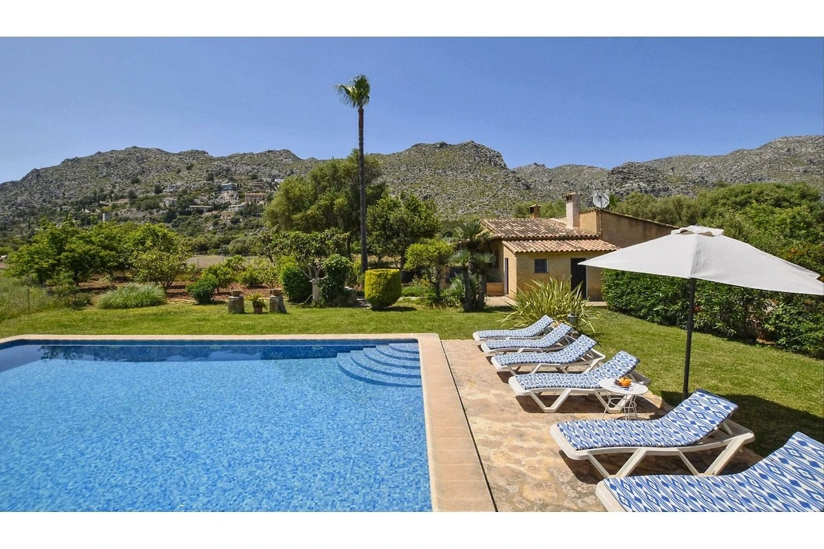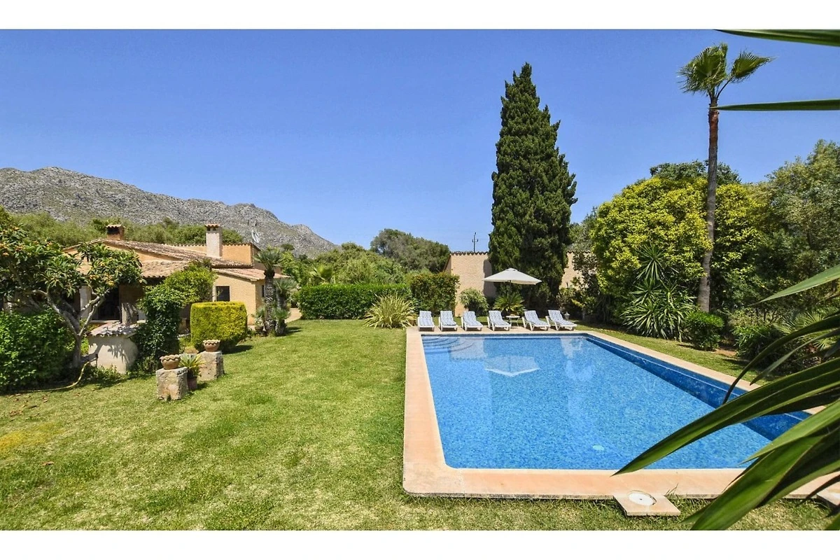 „Wiejski dom na obrzeżach Pollença, w wiejskim otoczeniu, ale blisko wybrzeży Cala San Vicenç i Port Pollença. Duży trawnik na działce o powierzchni 15 000 m2 z otwartymi widokami na okolicę z zadbanym ogrodem z drzewami owocowymi i dekoracyjnymi rośliny Niedawno odnowiony dom z 3 sypialniami i 2 łazienkami - z których jedna znajduje się na zewnątrz Bardzo czysty i zadbany dom, 3 km od uroczej Starówki Pollença i 6 km od morza.