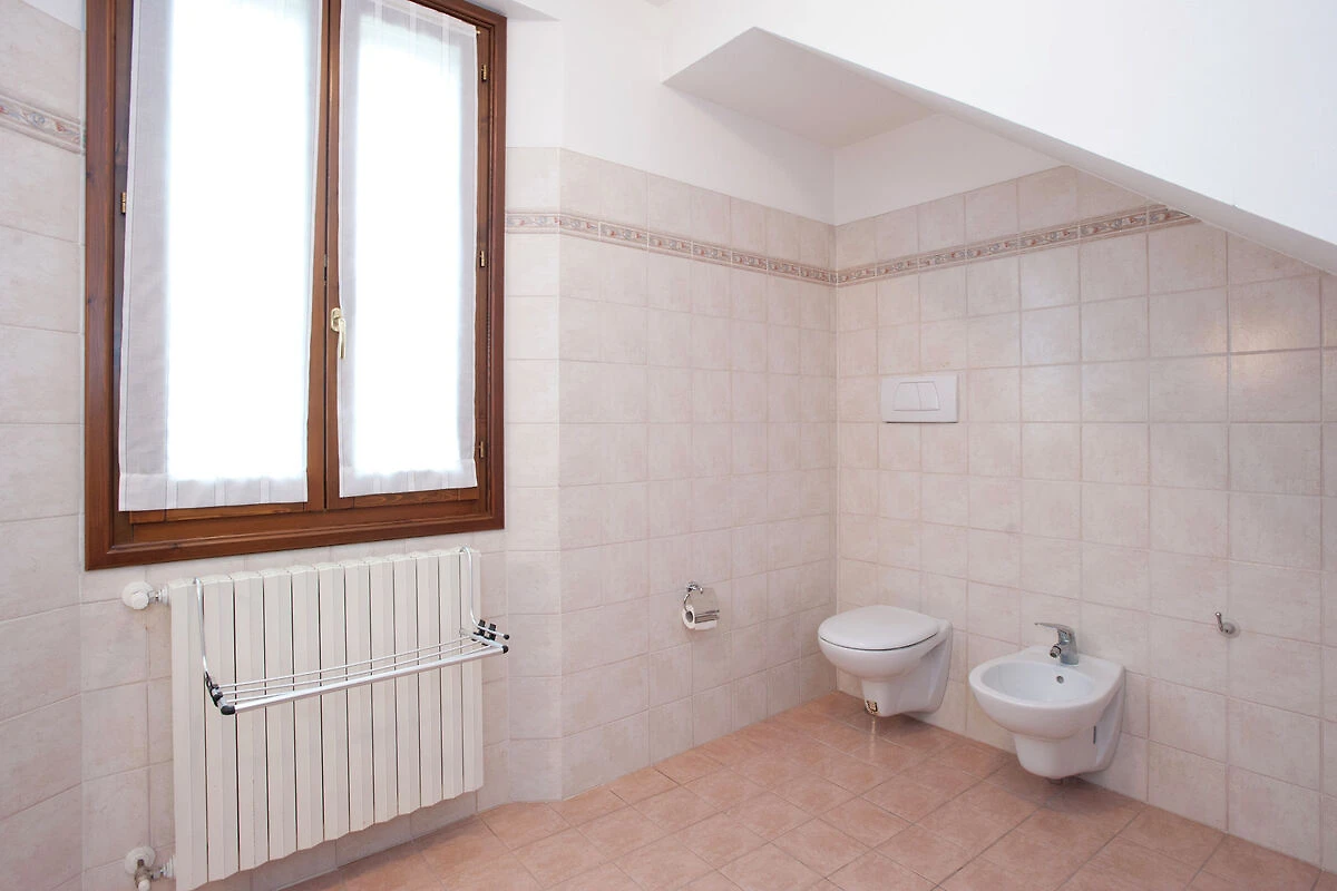Parter: (otwarta kuchnia(piec, kuchenka(plyta grzewcza), lodówko-zamrażarka, umywalka), salon/sypialnia(łóżko 1-osobowe, łóżko 1-osobowe, stół jadalniany), sypialnia(łóżko 2-osobowe), łazienka(prysznic, umywalka, toaleta, bidet, pralka(platny)), ogrzewanie, łóżko dziecięce)