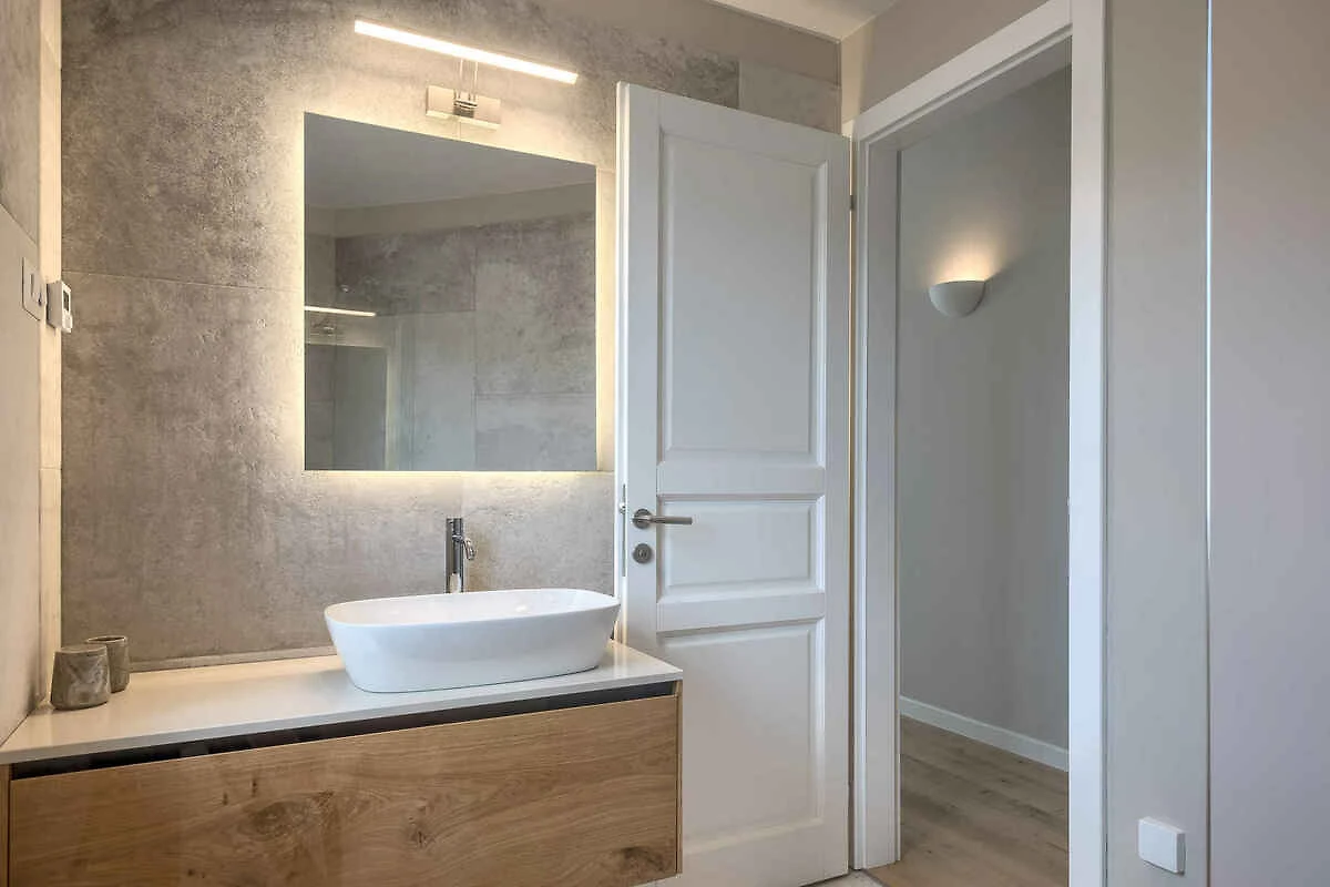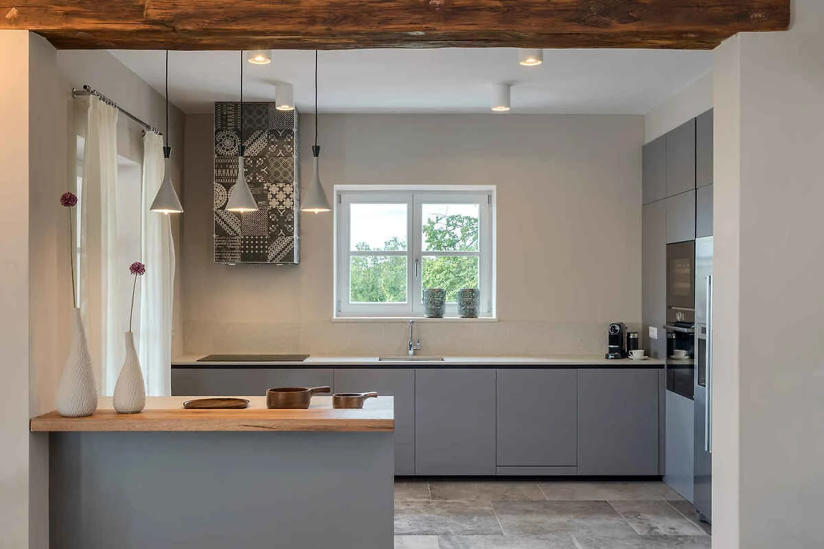 Samodzielnie stojąca willa, zbudowana w 2019 roku, jest nowoczesna, luksusowa i urządzona w typowym stylu regionalnym. Działka znajduje się na skraju miejscowości. Ze względu na widok z działki na morze oraz spokojne i słoneczne położenie, dom jest bardzo popularny. Do wyłącznej dyspozycji gości: trawnik do leżakowania, parasol słoneczny, leżak, prysznic ogrodowy, możliwość grillowania, taras i meble ogrodowe.