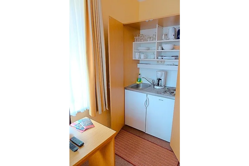 W obiekcie nie ma obsługi. Chciałbym podziękować za pośrednictwo w rezerwacji pokoi Zingst. Moja podróż pociągiem z Bawarii nieco mnie niepokoiła z powodu ewentualnych spóźnionych połączeń, także dlatego, że nawet przy punktualnym przyjeździe pociągu dotarłbym do Zingst dopiero po godzinach pracy. Dlatego pośrednictwo w rezerwacji pokoi zaproponowało, aby zostawić klucz do mieszkania i poinformować mnie o szczegółach telefonicznie po przyjeździe na dworzec Barth. Moje obawy, że mogą to ewentualnie zapomnieć lub nie skontaktować się ze mną, były bezpodstawne. Wszystko poszło super!