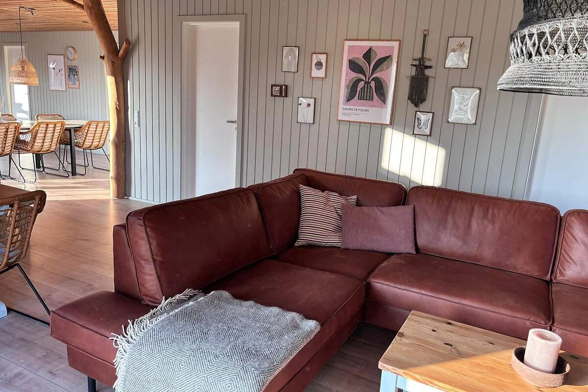 Z salonu można podziwiać widok na mały strumień i chroniony obszar przez duże okna, gdzie przy odrobinie szczęścia można zobaczyć bogatą faunę okolicy. Salon wyposażony jest w telewizor Smart TV i Wi-Fi, a także zachęca do relaksu na miękkich meblach lub do przytulnych spotkań przy dużym stole do gier. Dom jest urządzony z duszą i wieloma dopracowanymi detalami. To dom, w którym natura, komfort i dobre samopoczucie łączą się ze sobą.