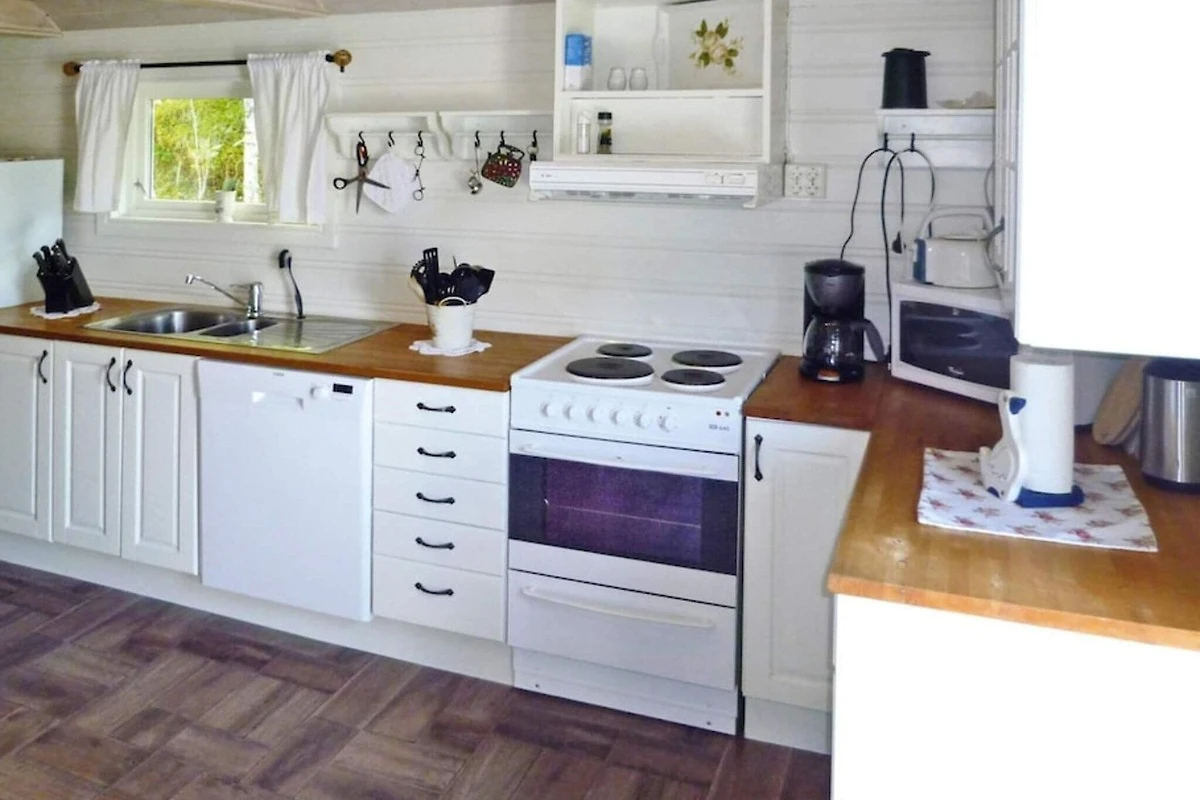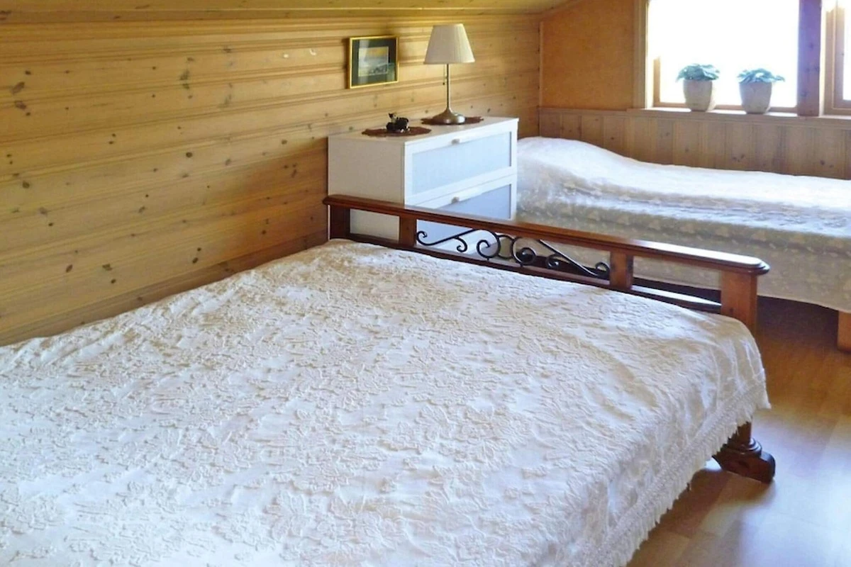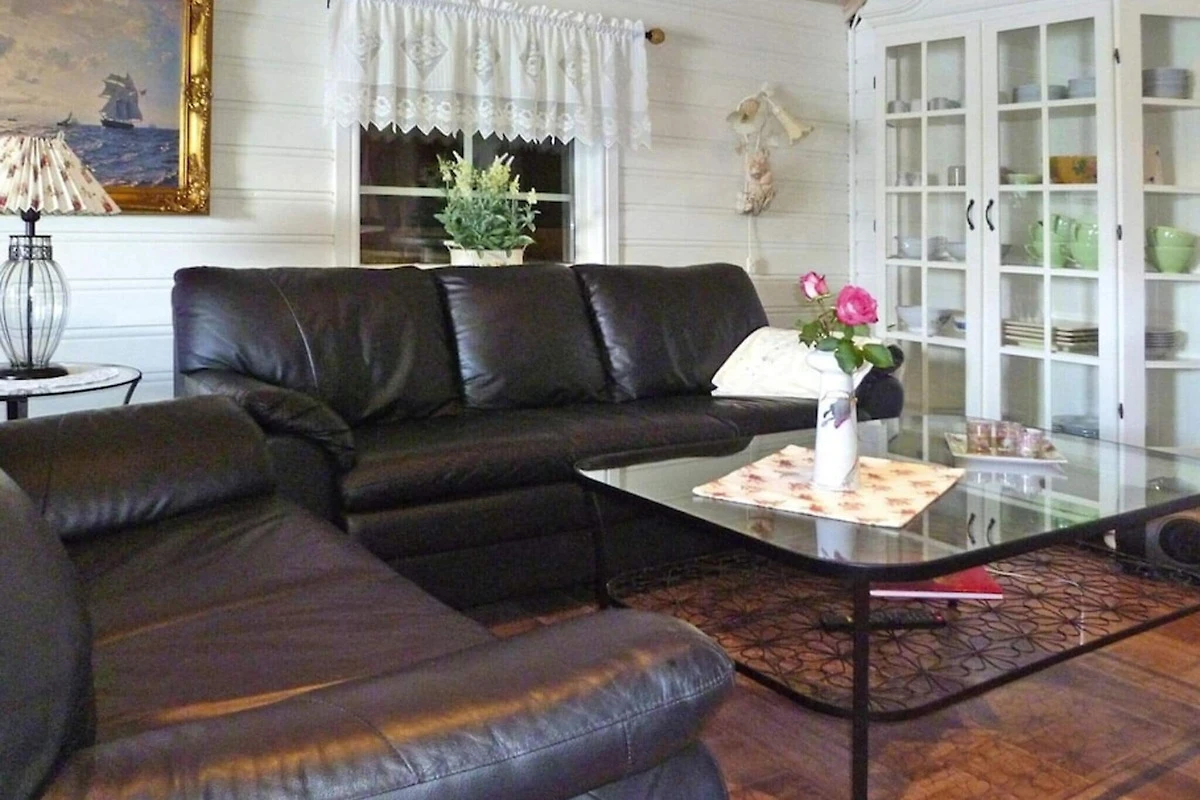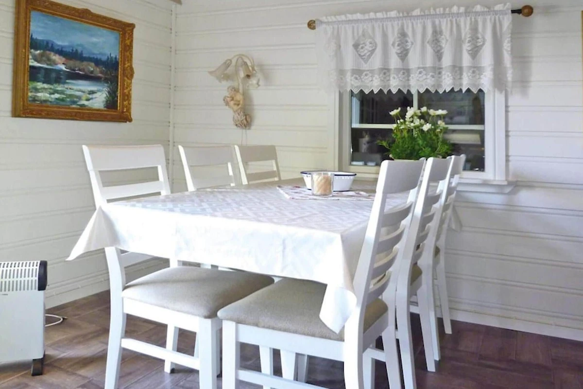, otwarta kuchnia(kuchenka(elektryczny), zaparzacz do kawy(filter), kuchenka mikrofalowa, zmywarka do naczyń, lodówka, zamrażarka(> 250L), pralka, krzesło dziecięce), salon/sypialnia(25 m2)(TV(Norweskie programy TV), radio), sypialnia(łóżko 1-osobowe, łóżko 2-osobowe, łóżeczko dziecięce), sypialnia(łóżko 1-osobowe, łóżko 2-osobowe), łazienka(umywalka, prysznic, toaleta), garaż, ogrzewanie(elektryczne), taras(10 m2), meble ogrodowe, grill, parking