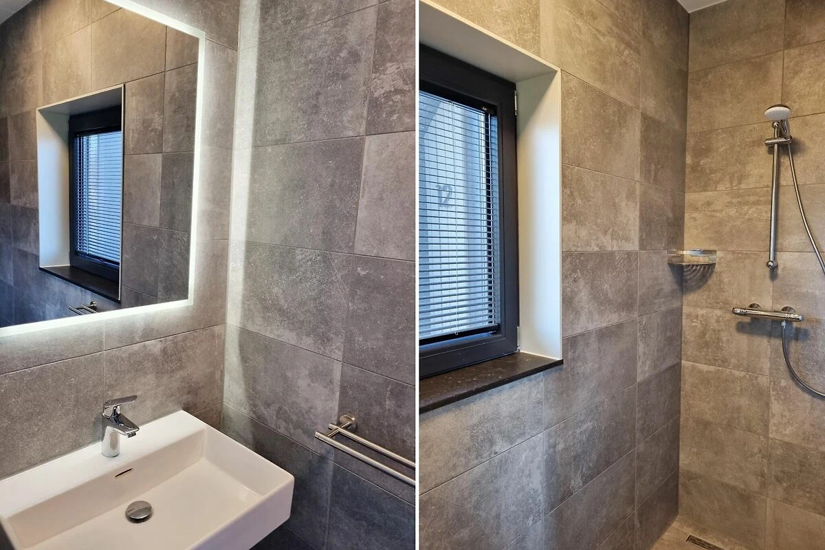 Na 1 piętrze: (sypialnia(łóżko 1-osobowe(80 x 200 cm), 1-osobowe łóżko piętrowe(80 x 200 cm)), sypialnia(łóżko 2-osobowe(boxspring)), sypialnia z łazienką(łóżko 2-osobowe(boxspring), prysznic(Kabina prysznicowa), umywalka), łazienka(prysznic, umywalka), toaleta(umywalka, toaleta), przejście)