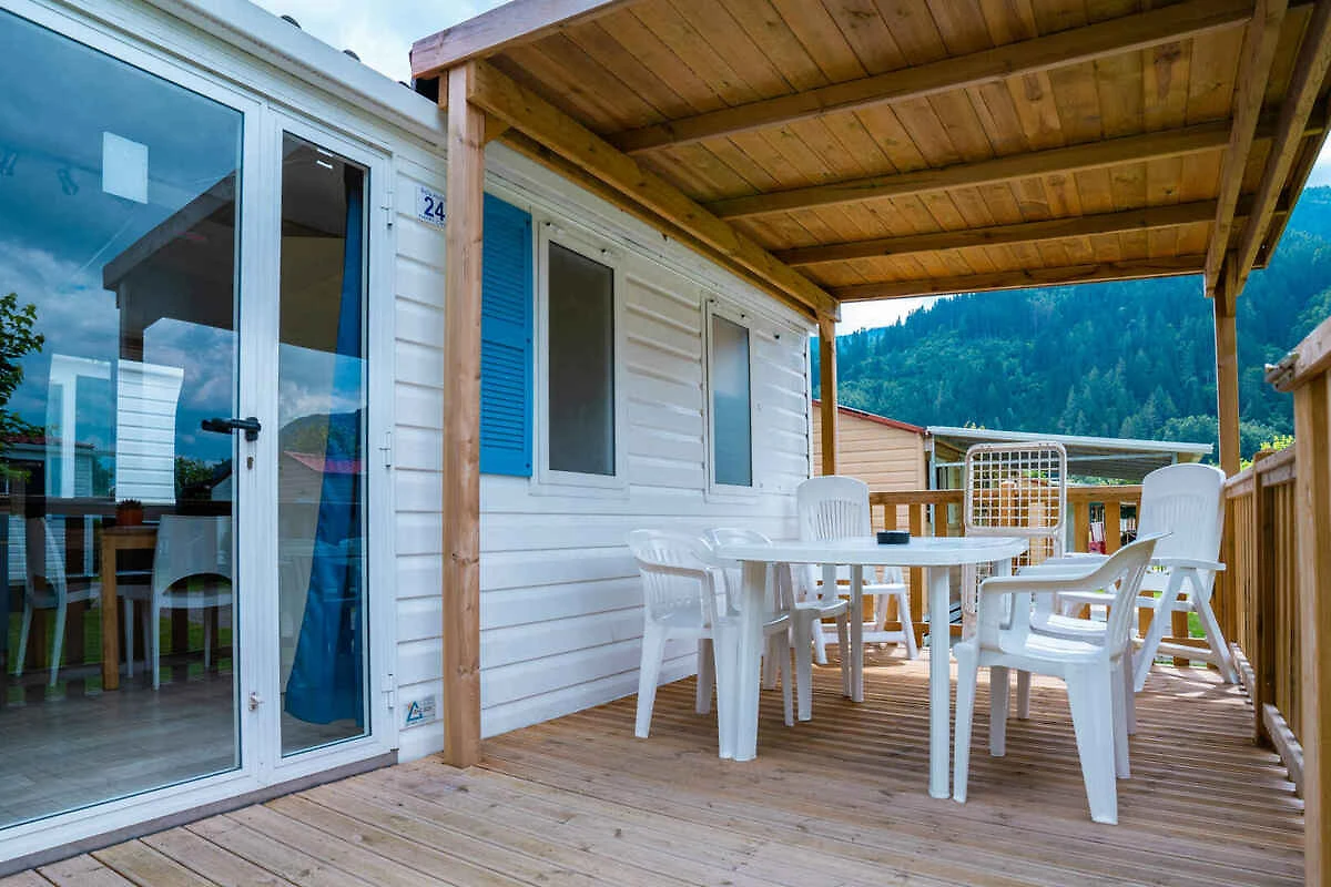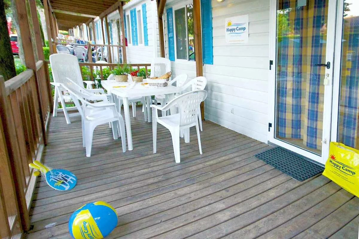 Samodzielnie stojący mobilhome jest urządzony funkcjonalnie. Działka znajduje się na kempingu. Również ze względu na słoneczne położenie kwatera cieszy się popularnością. Do dyspozycji są: parasol przeciwsłoneczny, leżak, plac zabaw dla dzieci, możliwość grillowania, taras i meble ogrodowe. +++ ZWIERZĘTA DOMOWE: Zwierzęta do 35 kg dozwolone. Psy muszą posiadać unijny paszport dla zwierząt domowych oraz, w celu identyfikacji, elektroniczny mikrochip. +++ Korzystanie z grilli na węgiel drzewny jest zabronione, można jednak używać grilli gazowych lub na kamienie lawowe. Dostępna jest wspólna strefa do grillowania.