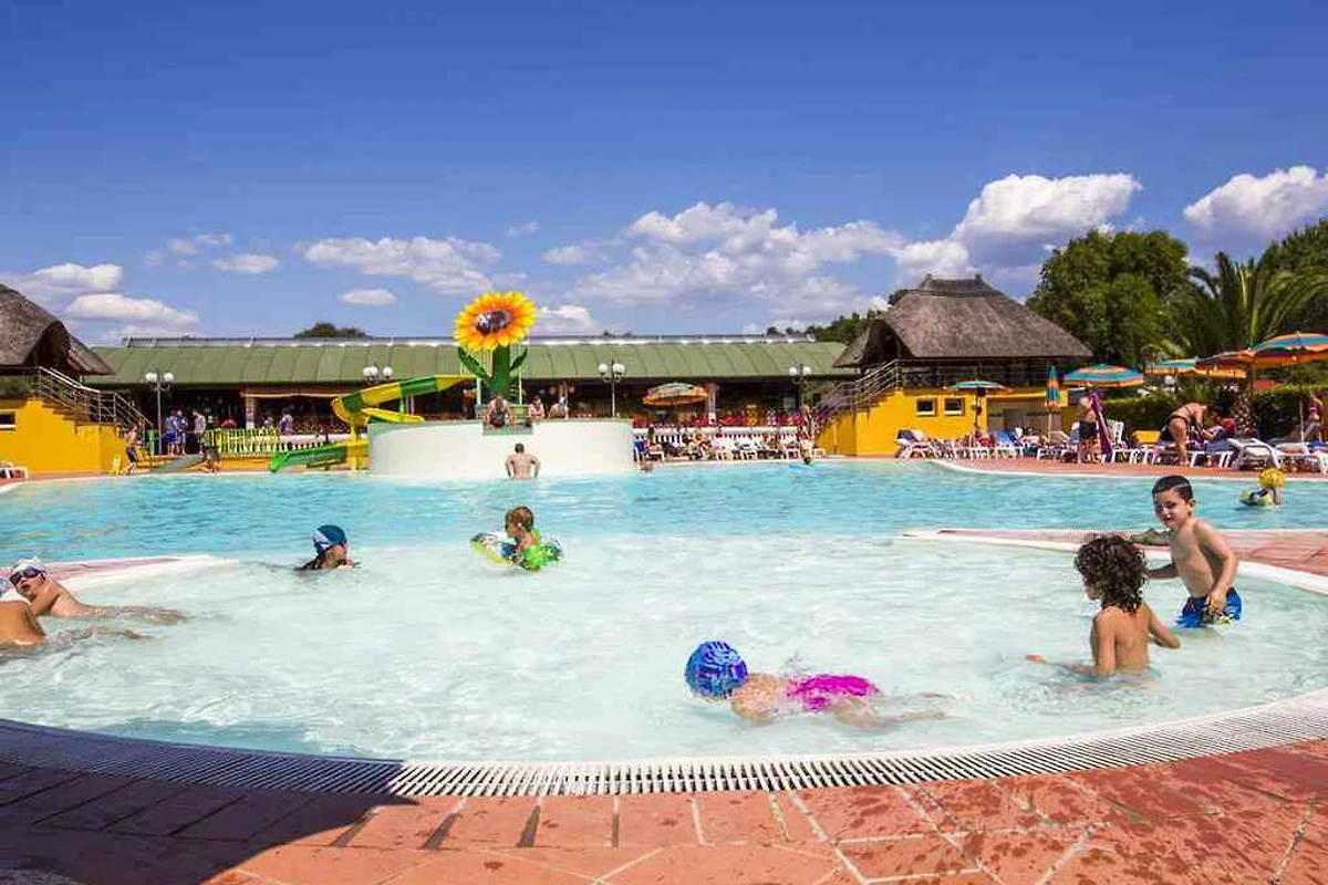 Wszystkie baseny są do Państwa wspólnego użytku. Basen zewnętrzny. Basen dla dzieci. Duży basen kempingowy, wyposażony w zjeżdżalnię dla dzieci, jest idealny do rodzinnej zabawy. Parasole i leżaki dostępne są w zależności od dostępności. Noszenie czepka kąpielowego jest obowiązkowe. Basen jest otwarty od maja do września i oferuje gościom długie dni pełne zabawy i relaksu.