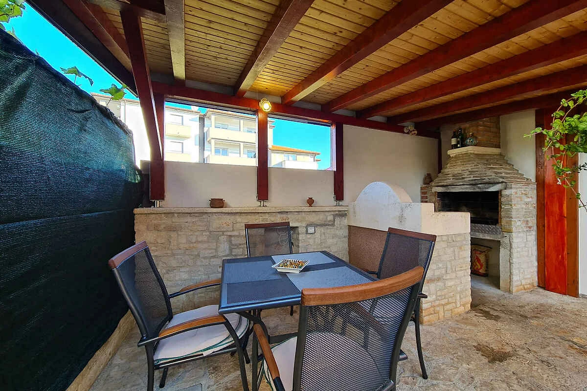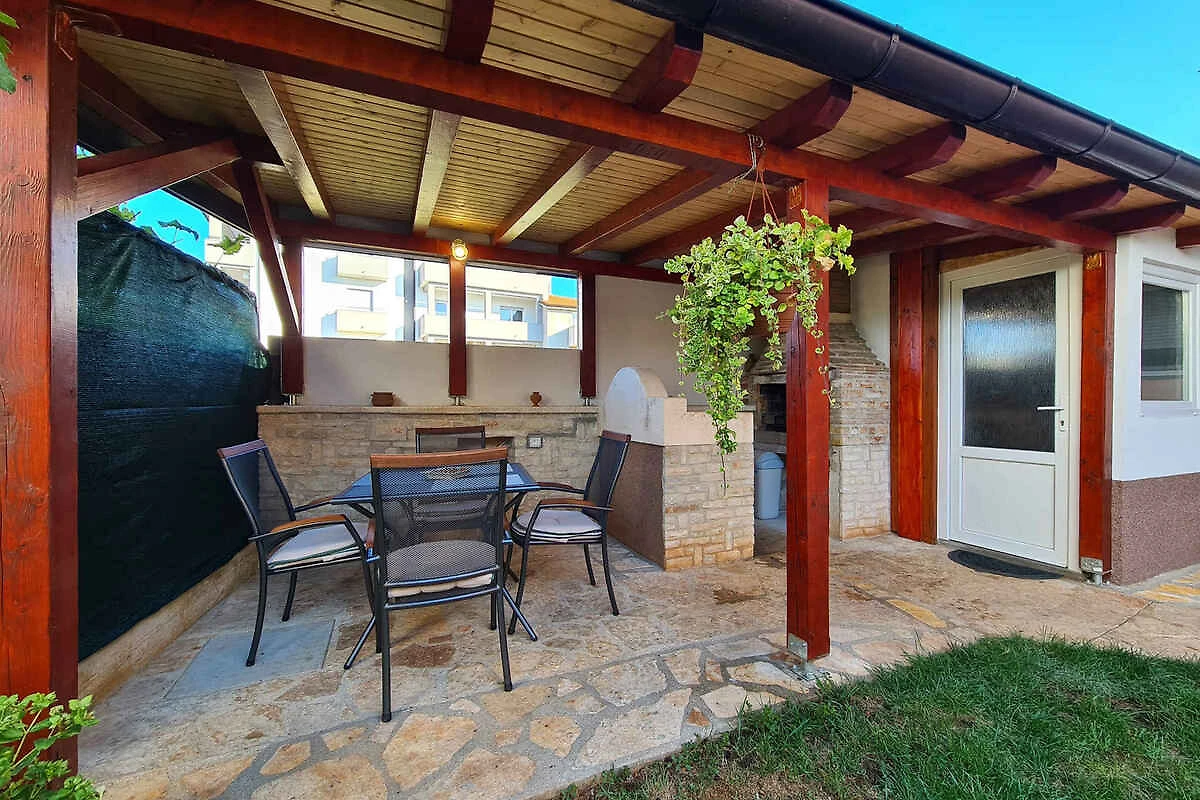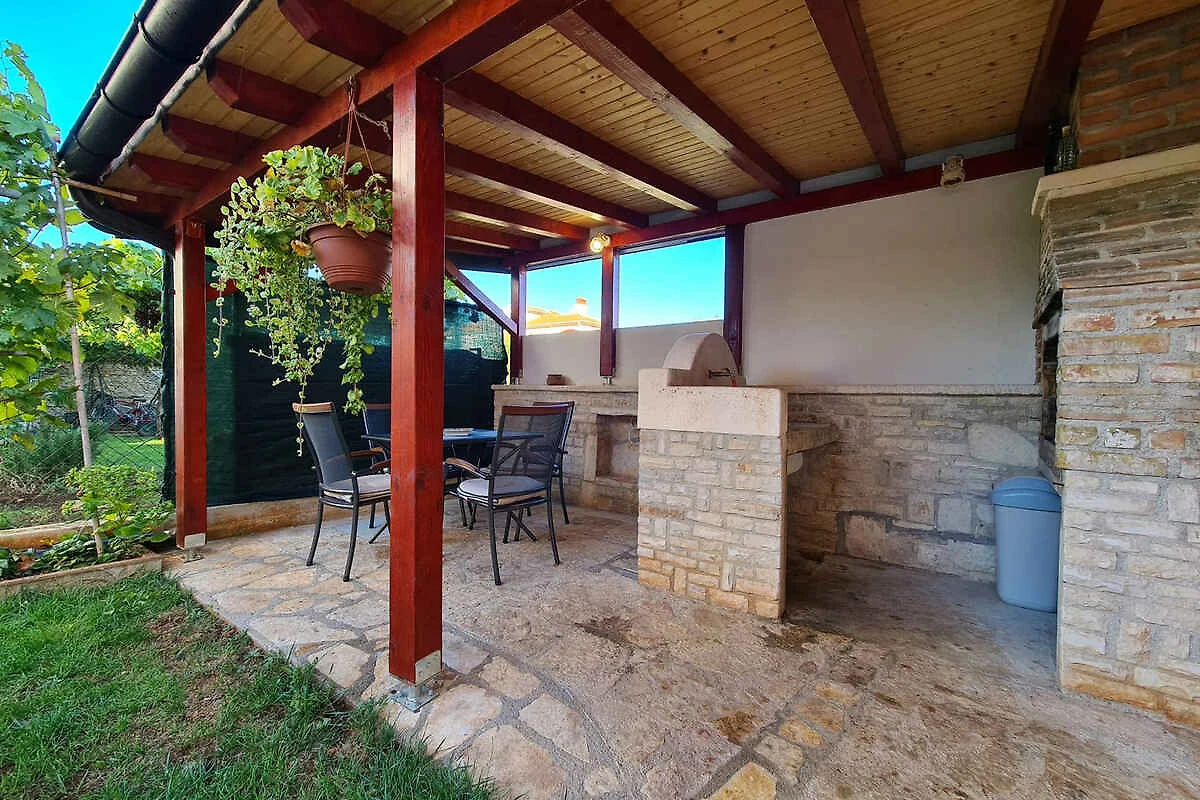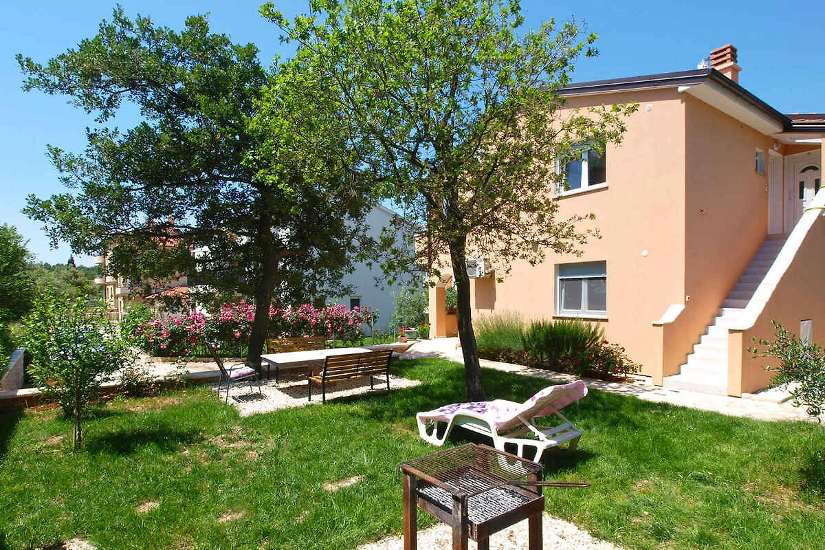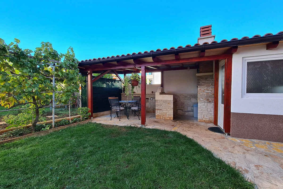Ližnjan. Mieszkanie wakacyjne znajduje się na zamkniętej posesji ogrodowej o powierzchni 45 m2 z kwiatami i drzewami, otoczonej płotem. Właściciel mieszka na stałe w domu. Dojazd drogą boczną (asfaltowa). Parking na posesji.