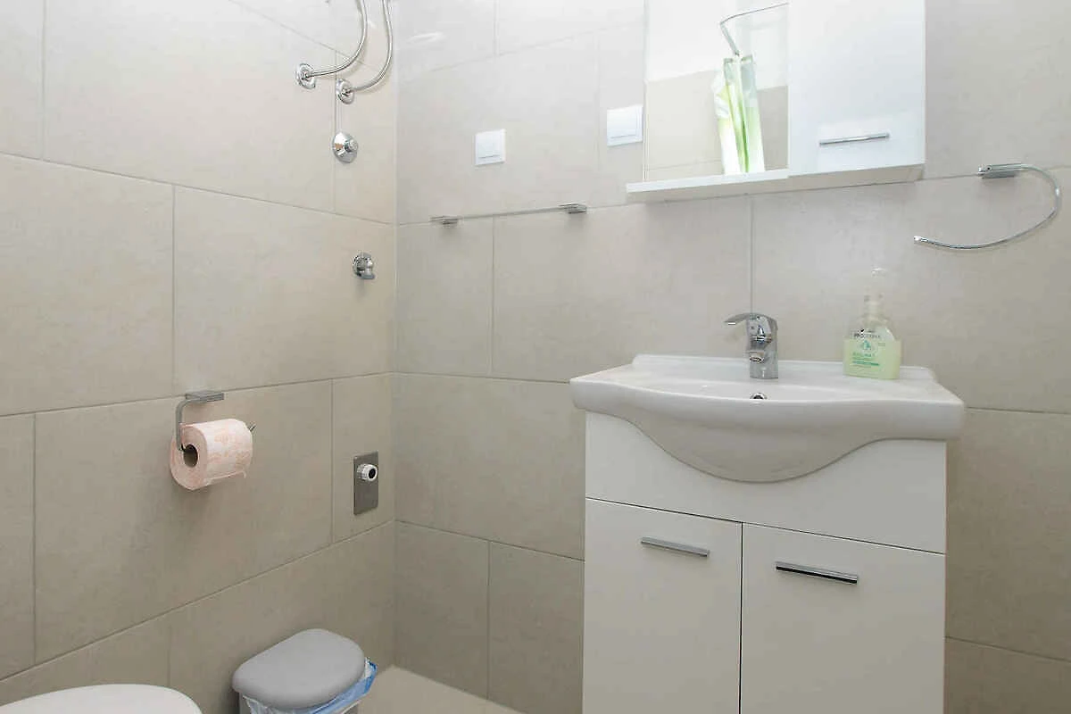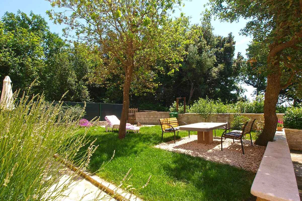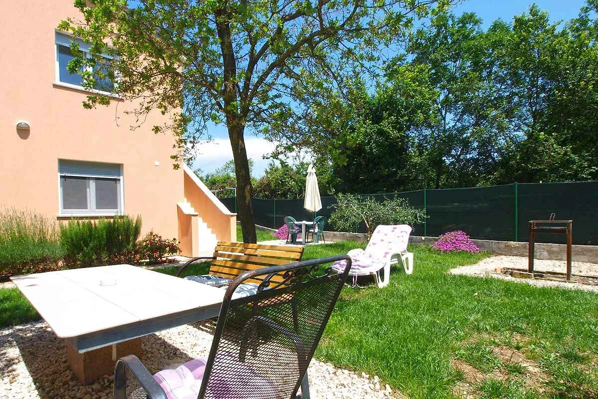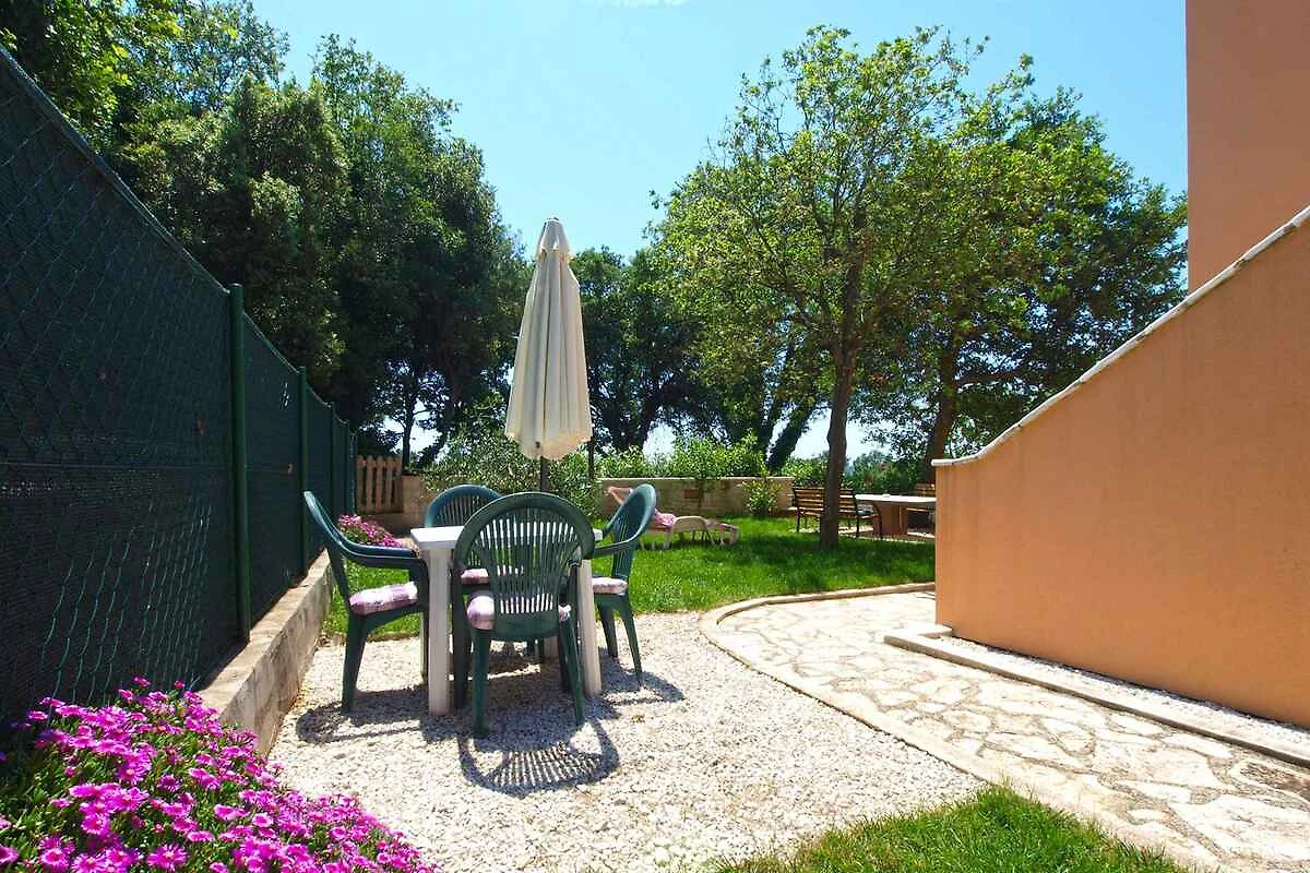 Ližnjan. Apartament wakacyjny znajduje się na ogrodzonej działce ogrodowej o powierzchni 32 m² z kwiatami i drzewami, ograniczonej płotem. Właściciel mieszka na stałe w domu. Dojazd odbywa się drogą boczną. Parking na posesji.