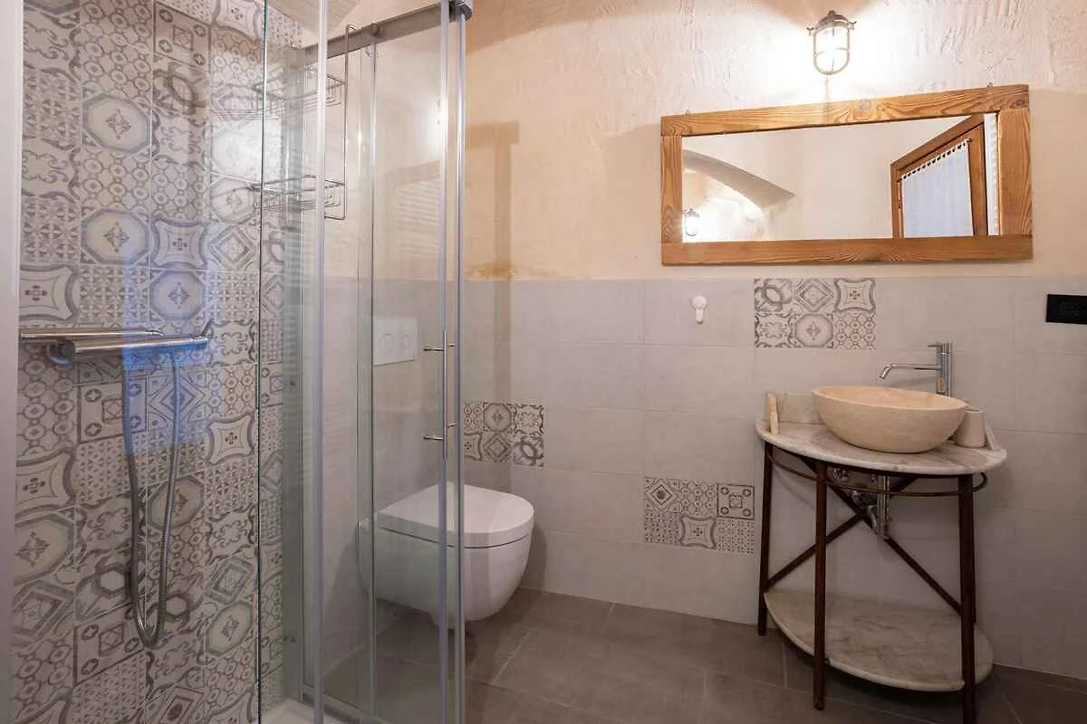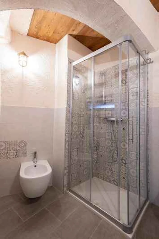 1. piętro: Sypialnia (40 m2) z 1 łóżkiem dwuosobowym i dostępem do balkonu (meble ogrodowe). Sypialnia (40 m2) z 2 łóżkami jednoosobowymi i dostępem do balkonu. Łazienka z pralką, prysznicem, WC, bidetem i suszarką do włosów.