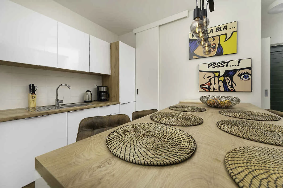 Apartament wakacyjny znajduje się w domu szeregowym i jest urządzony funkcjonalnie. Również ze względu na słoneczne położenie kwatera cieszy się popularnością. Do wyłącznego użytku dostępne są: leżak, taras i meble ogrodowe.