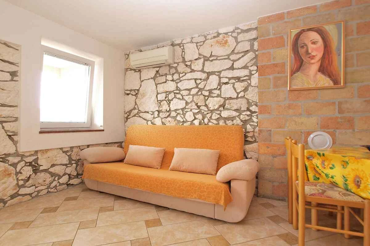 Vinkuran. Mieszkanie wakacyjne znajduje się na zamkniętej posesji ogrodowej z łąką, kwiatami, krzewami i drzewami, otoczonej płotem. Właściciel mieszka w domu. Dojazd drogą boczną (asfaltowa). Parking na posesji.
