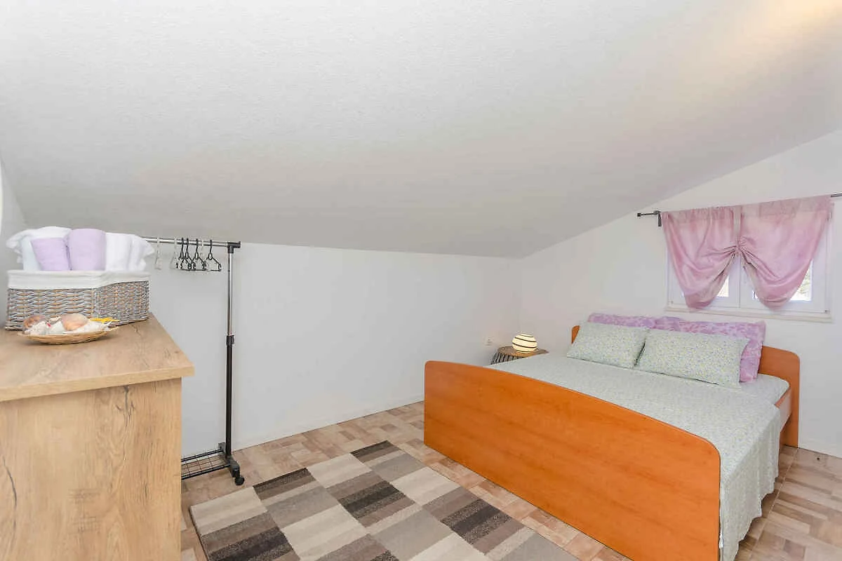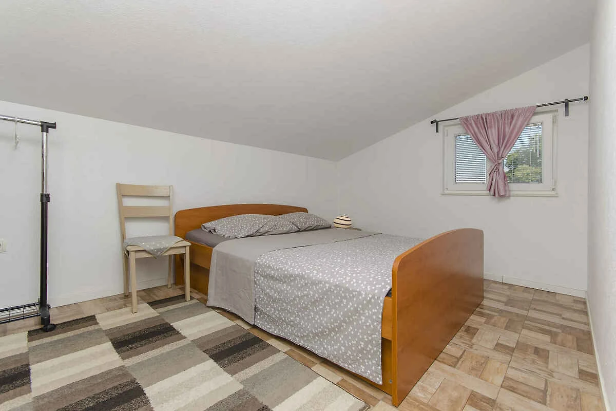 Pirovac. Mieszkanie wakacyjne znajduje się na działce ogrodowej. Wynajmujący mieszka w domu tylko czasami, jednak korzysta z osobnego wejścia. Widok na ulicę. Dojazd odbywa się drogą boczną (asfaltowaną). Parking na ulicy przed domem.