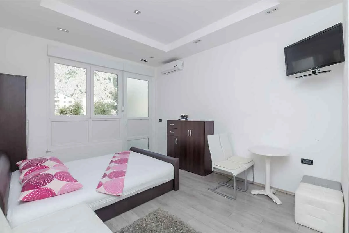 Pokój dzienny/sypialnia z 1 łóżkiem podwójnym, 1 dodatkowym miejscem do spania na kanapie/sofie, kącikiem wypoczynkowym, TV, jadalnią (3 miejsca) oraz wyjściem na taras. Aneks kuchenny w pokoju dziennym/sypialni z kuchenką elektryczną (2 pola), lodówką (zamrażalnik) i czajnikiem elektrycznym. Łazienka z prysznicem, WC i oknem.