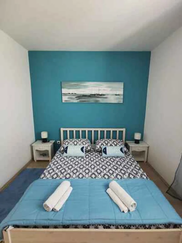 2 Sypialnia każdorazowo z 1 łóżkiem dwuosobowym. Salon z 2 dostawkami na tapczanie/sofie, kącikiem wypoczynkowym, TV, kącikiem jadalnianym (6 miejsc) i dostępem do balkonu. Kącik kuchenny w salonie z kuchenką elektryczną (4 płytek), piekarnikiem, zmywarką, lodówką (zamrażalnik), mikrofalówką, ekspresem do kawy, tosterem i czajnikiem elektrycznym. Łazienka z prysznicem, WC i oknem.