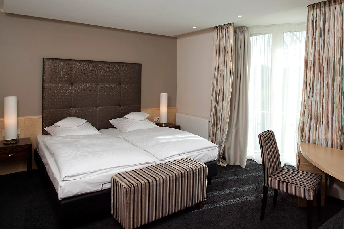Sehr schönes gepflegtes Hotel mit äußerst nettem Personal. Lage zwar etwas abseits, jedoch durch den Wald ein angenehmer Spaziergang in das Ortszentrum. Sehr schönes großes Schwimmbad mit Wellnessbereich.