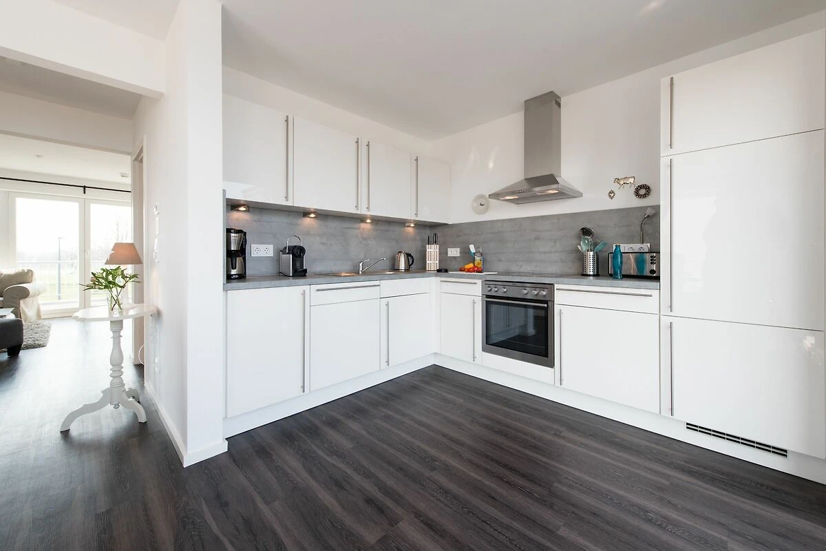 Sehr schöne Ferienwohnung im Hafenresort Olpenitz. Toller Blick aus der Küche und von der Terrasse auf die Schleimündung. Zusätzlicher Parkplatz war bei dieser Wohnung kein Problem. Fußweg zum Edeka war kurz. Der Weg zum Strand allerdings relativ lang. 1km in Richtung Osten. Auch der Hafenstrand war nicht näher dran. Das sollte man wissen. Der Bäcker und der Edeka waren super - völlig ausreichend für die Urlauber. Brötchen konnten per App bestellt werden, dadurch keine langen Schlangen am Morgen beim Brötchen holen. Das italienische Restaurant in der Nähe war auch gut - man sollte gerade in der Hauptsaison reservieren. Für alle anderen Aktivitäten braucht man ein Auto oder fährt mit dem Bus, der im Ressort hält. Fußläufig in der Nähe gibt es nichts.