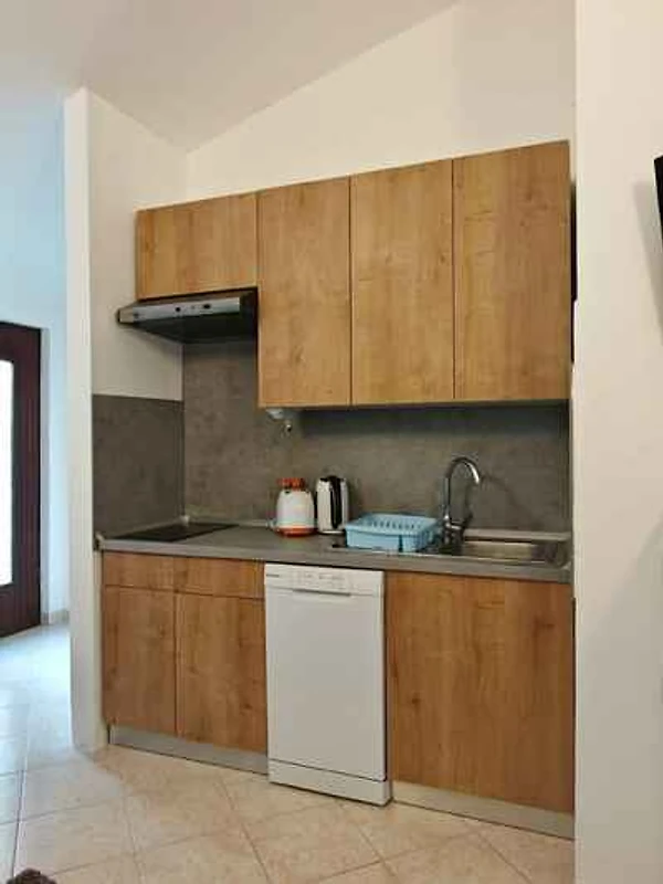 Wejście do Państwa apartamentu wakacyjnego znajduje się na parterze i prowadzi przez 2 stopnie oraz taras bezpośrednio do kuchni z częścią wypoczynkową i drzwiami do wszystkich pomieszczeń.