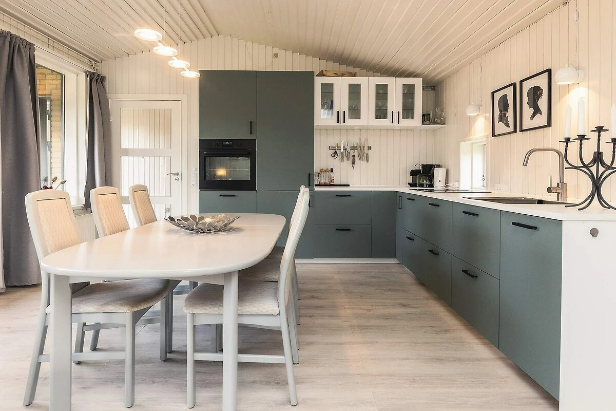 Kuchnia(kuchenka(elektryczny), zaparzacz do kawy, zmywarka do naczyń, lodówka(+ zamrazarka)), salon/sypialnia(TV), sypialnia(2x łóżko 1-osobowe), sypialnia(4x łóżko piętrowe), łazienka(umywalka, prysznic, toaleta), łazienka(umywalka, prysznic, toaleta), zmywarka do naczyń, ogrzewanie(centralne), taras, parking
