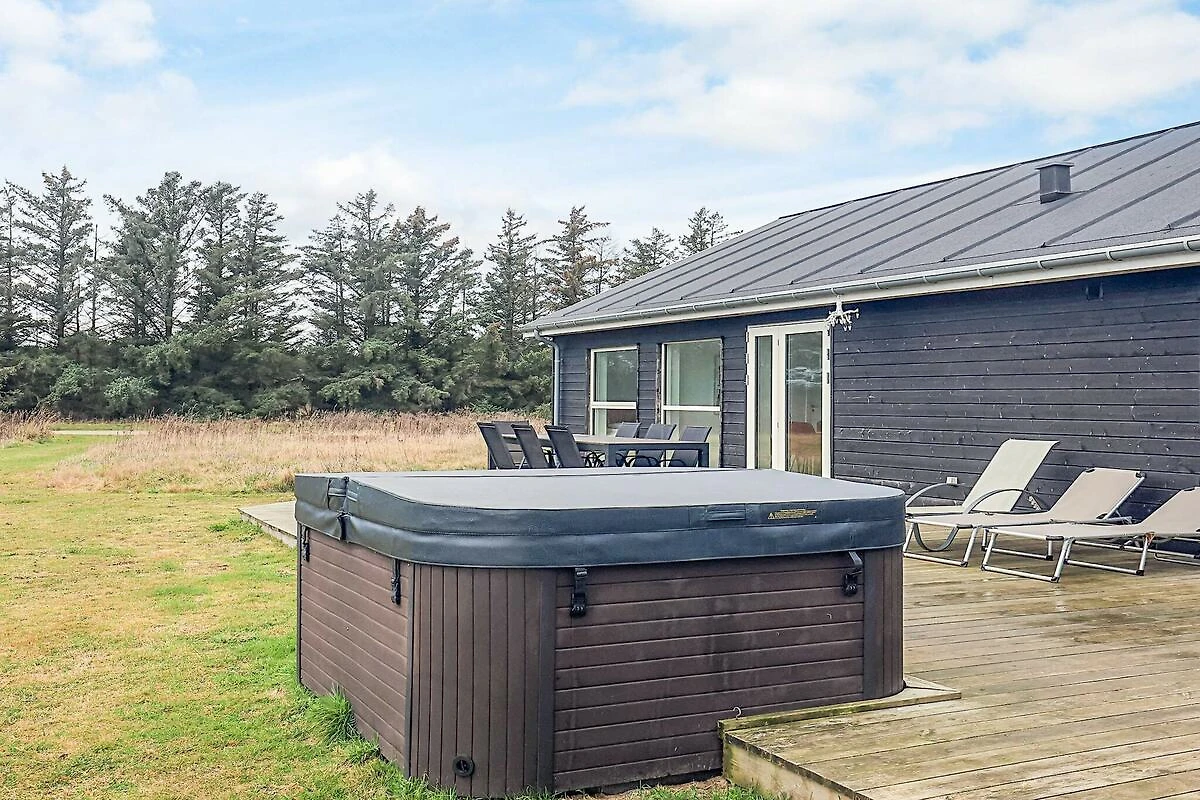 Dom i aneks połączone są dużym i uroczym tarasem o powierzchni ok. 70 m² z zewnętrznym jacuzzi i prysznicem, a także wieżą zabaw i zjeżdżalnią. Zewnętrzne jacuzzi jest dostępne od kwietnia do października. W miesiącach zimowych można również uruchomić zewnętrzne spa, po uiszczeniu przez gości opłaty za późniejsze przygotowanie do zimy w wysokości 1400 DKK. Aby uzyskać więcej informacji, prosimy o kontakt z lokalnym biurem w Løkken.