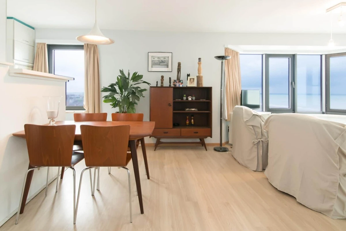Ten świeży i przytulny apartament z 1 sypialnią na 7. piętrze oferuje oszałamiające widoki na morze, położony w malowniczym Zeedijk w Raversijde. Przestronny salon wyposażony jest w wygodną rozkładaną sofę i łóżko chowane w ścianie, dzięki czemu jest idealny dla maksymalnie czterech gości. Dzięki dużej ilości naturalnego światła apartament oferuje spokojną i przestronną atmosferę, uzupełnioną o położenie od strony południowej, które zapewnia dużo słońca po południu. Sypialnia oferuje piękne widoki na morze, a apartament znajduje się zaledwie kilka kroków od plaży, a przystanek tramwajowy jest wygodnie tuż za rogiem.