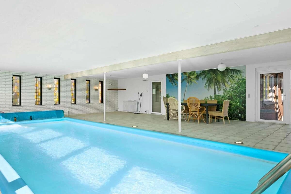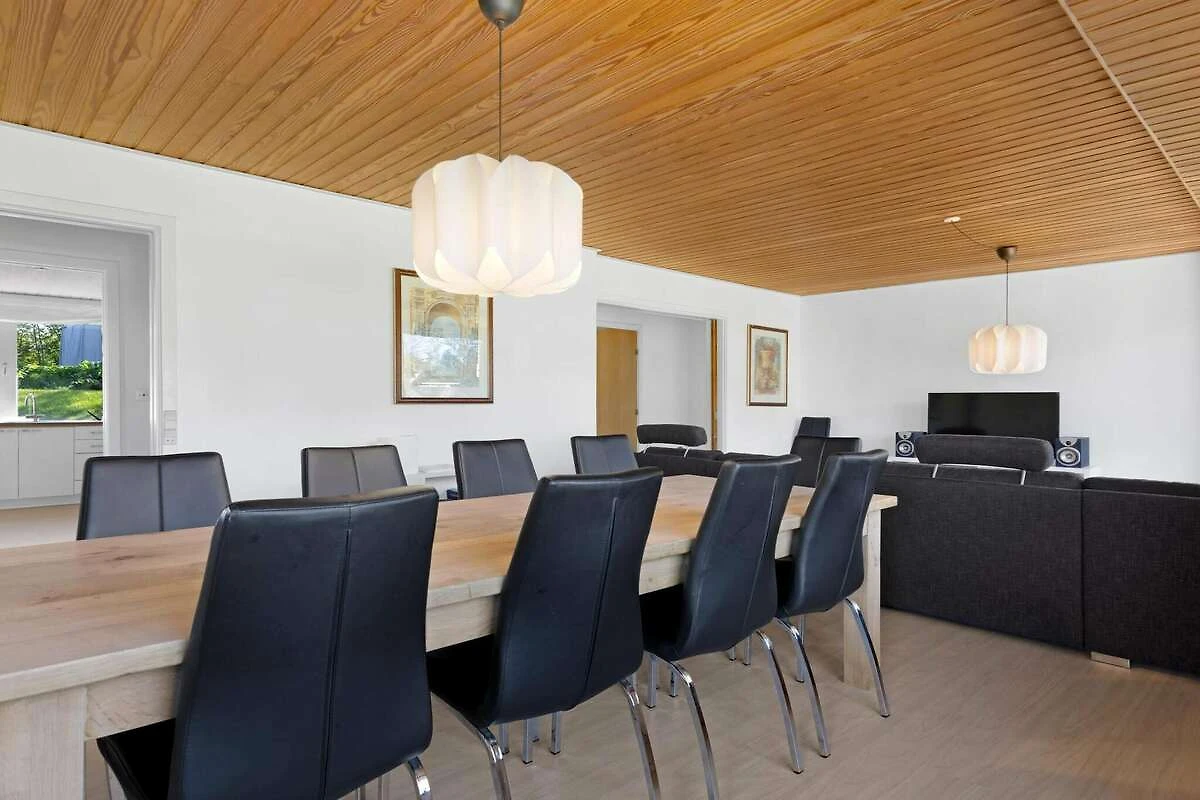 , kuchnia(piec(indukcyjna), kuchenka(2 palniki), zaparzacz do kawy, piekarnik, kuchenka mikrofalowa, zmywarka do naczyń, lodówka, lodówko-zamrażarka), salon/sypialnia(TV(Duńskie programy TV), chromcast), sypialnia(łóżko 2-osobowe), sypialnia(łóżko 2-osobowe), sypialnia(łóżko 2-osobowe, 2x łóżko piętrowe), sypialnia(łóżko 2-osobowe, 2x łóżko piętrowe), łazienka(umywalka, prysznic, toaleta, pralka), łazienka(umywalka, prysznic, toaleta), łazienka(umywalka, prysznic, toaleta), sauna(w domu ), meble ogrodowe, basen(w domu )