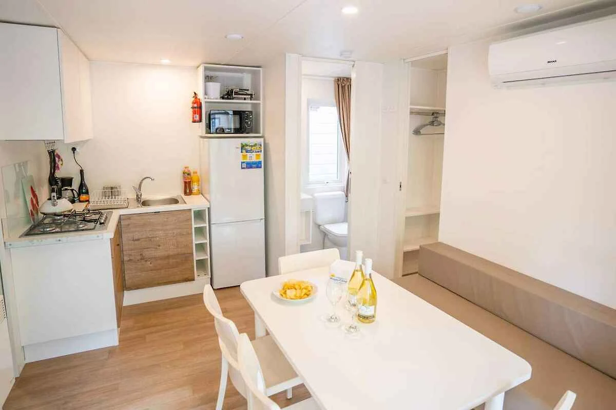 Samodzielnie stojący domek mobilny jest funkcjonalnie urządzony. Działka znajduje się na kempingu. Ze względu na słoneczne położenie, dom jest popularny. Do dyspozycji są: parasol przeciwsłoneczny, leżak, plac zabaw dla dzieci, możliwość grillowania, taras i meble ogrodowe. +++ ZWIERZĘTA DOMOWE: Zwierzęta domowe do 35 kg dozwolone. Psy muszą posiadać europejski paszport dla zwierząt domowych i, aby można je było zidentyfikować, elektroniczny mikroczip. +++ Używanie grilli na węgiel drzewny jest zabronione, ale można używać grilli gazowych lub na lawę wulkaniczną. Dostępna jest wspólna strefa grillowa.