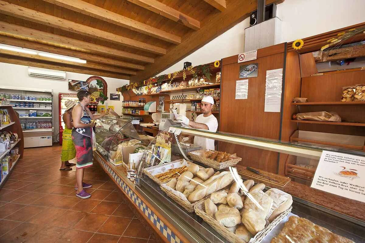 Kategoria krajowa 3 gwiazdki, recepcja, 1 restauracja, pizzeria, bar, supermarket i pralnia samoobsługowa. Jeśli chodzi o jedzenie, kemping oferuje restaurację-pizzerię, która serwuje pyszne dania, które można spożywać na miejscu lub wygodnie zabrać ze sobą. Bar na kempingu to idealne miejsce na relaks i delektowanie się napojem lub przekąską przez cały dzień. Kemping posiada praktyczny supermarket z świeżymi owocami i warzywami. Ponadto dostępne są ważne usługi, takie jak pralnia i bezpłatne Wi-Fi wokół basenu i centrum handlowego (hasło można uzyskać w głównej recepcji). Przy zameldowaniu wymagana jest kaucja w wysokości 5,00 € za kartę magnetyczną, która jest niezbędna do otwierania szlabanu na parkingu i bram dla pieszych w godzinach wieczornych. Kaucja ta zostanie zwrócona na koniec pobytu po zwrocie karty. Goście, którzy chcą korzystać z usług animacyjnych, basenu, autobusu wahadłowego, siłowni i sauny, muszą zakupić opaskę za 2,50 € za osobę za pobyt (od 3 lat).