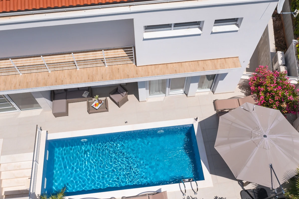 Zakwaterowanie jest wyposażone w następujące rzeczy ogród, meble ogrodowe, taras, pralka, grill, żelazko, internet (wifi), suszarka do włosów, pompa ciepła, klimatyzacja, basen klimatyzowany prywatny, parking na otwartej przestrzeni w przy budynku, Telewizor, antena satelitarna.