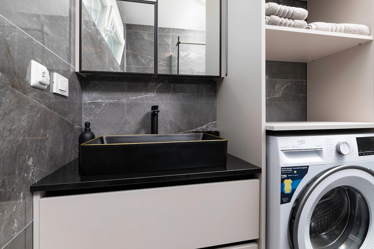 The kuchnia otwarta, od płyta indukcyjna, jest wyposażone w chłodziarka, mikrofalówka, piekarnik, zamrażarka, zmywarka, naczynia/sztućce, przybory kuchenne, ekspres do kawy i opiekacz/toster.