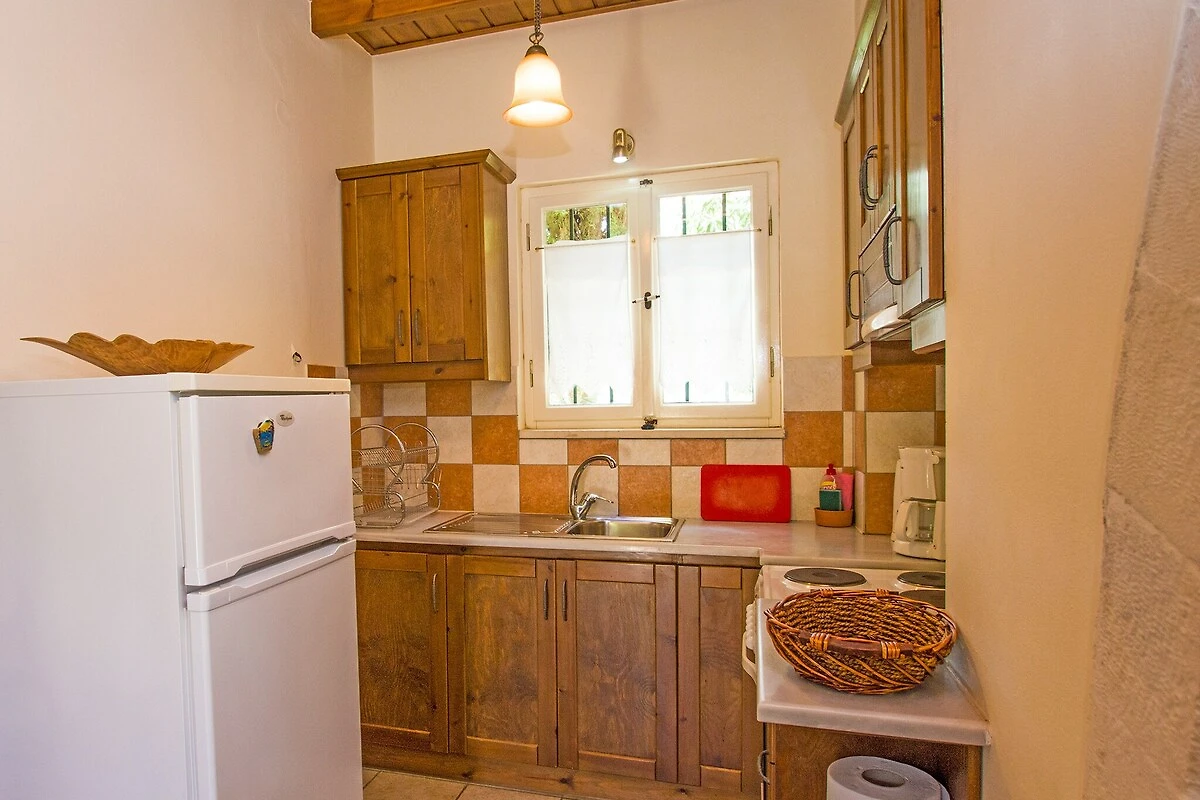 Ta urocza willa o powierzchni 75 m² w Chanii oferuje spokojne miejsce wypoczynkowe dla maksymalnie 5 gości. Z 1 przytulną sypialnią i jasnym, przestronnym wnętrzem łączy komfort z pięknym widokiem na góry i ogród. Nieruchomość jest idealnie położona w spokojnej, wiejskiej okolicy, zaledwie 50 metrów od lokalnego minimarketu i 100 metrów od pobliskiej tawerny. Piaszczysta plaża Almyrida znajduje się zaledwie 3 km od willi, a malownicze miasto Vamos również znajduje się zaledwie 3 km od willi. Międzynarodowe lotnisko w Chanii znajduje się 33 km od willi, co czyni ją wygodną bazą wypadową na pobyt.