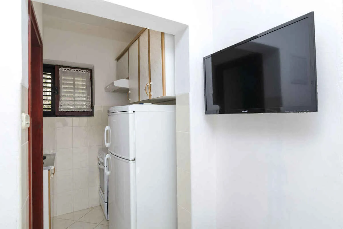 Kuchnia dzienna z 1 łóżkiem dwuosobowym. Kącik kuchenny w salonie z kuchenką gazową, piekarnikiem i lodówką. Łazienka z prysznicem i WC.